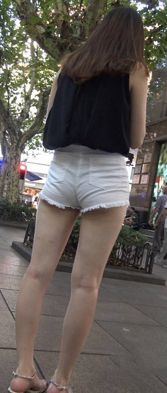 4K 黑色衣服街拍热裤极品美腿美女 编号9430