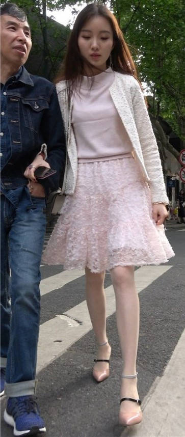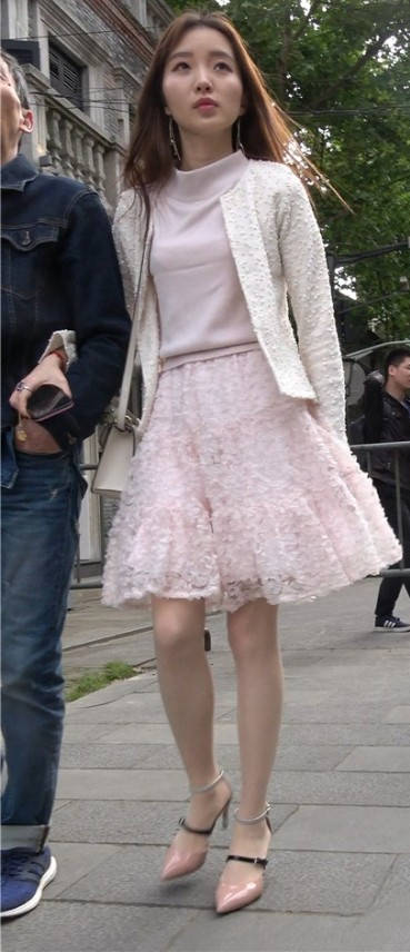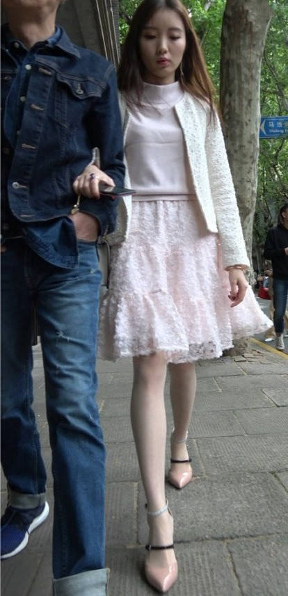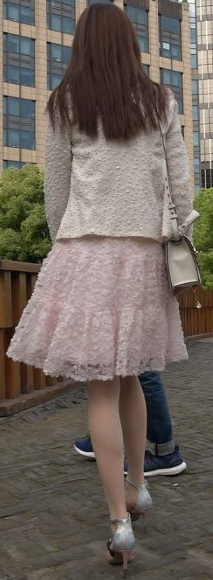 4K - 街拍粉色裙丝袜甜美靓妹 编号9433