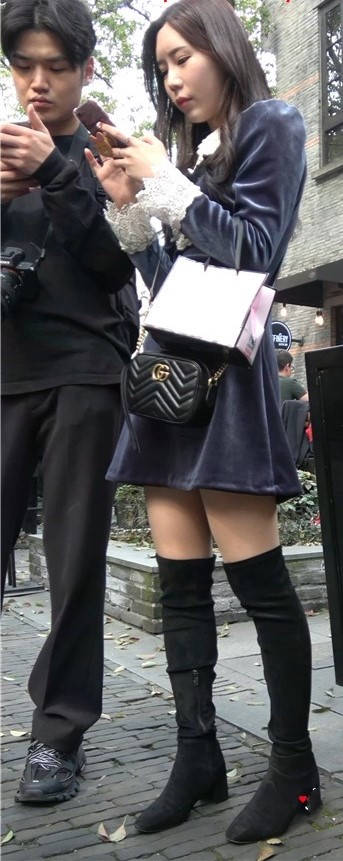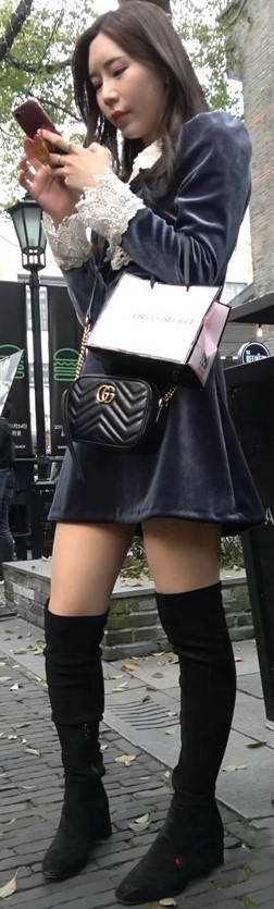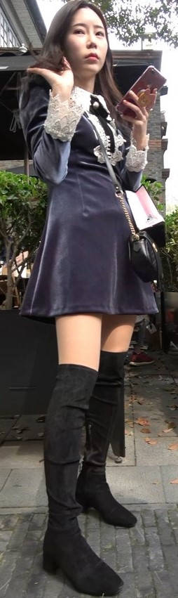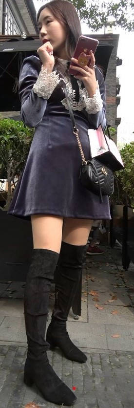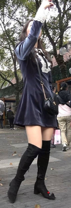 4K - 深色连衣裙街拍美腿姑娘一直在自拍 编号9436