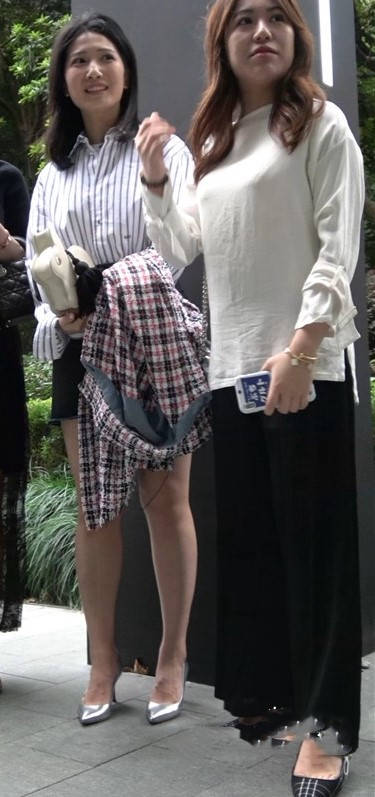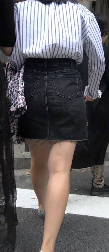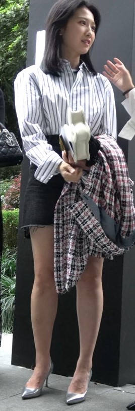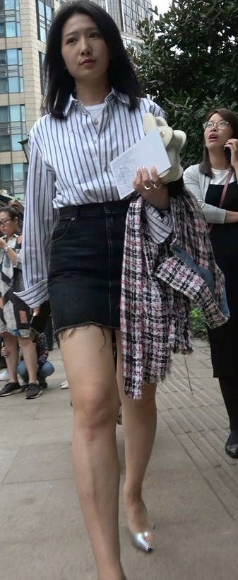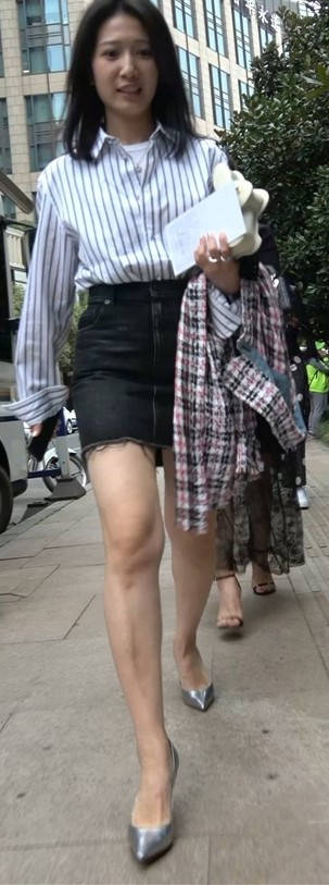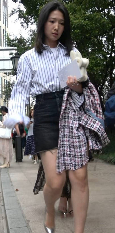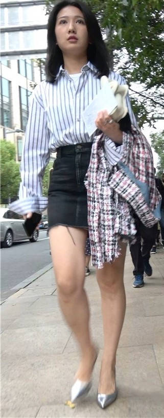 4K - 条纹衬衫短裙气质街拍高跟美女 编号9438