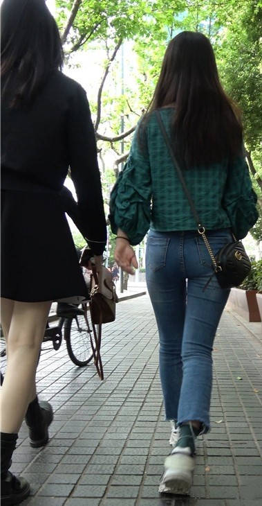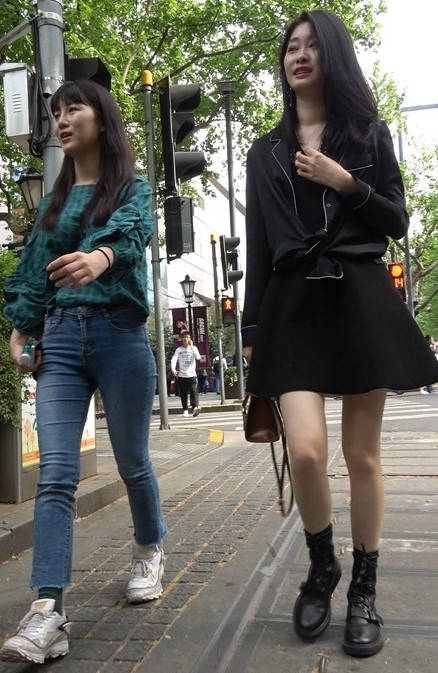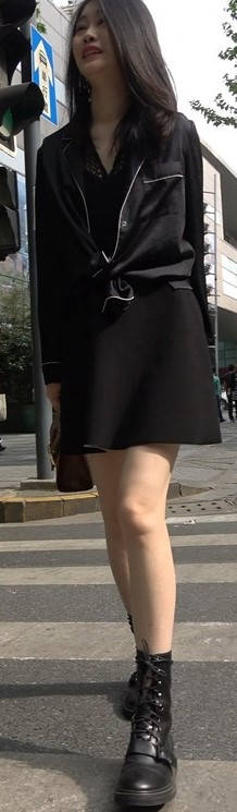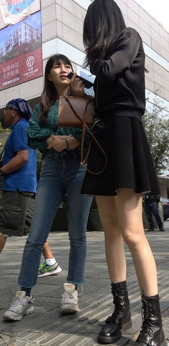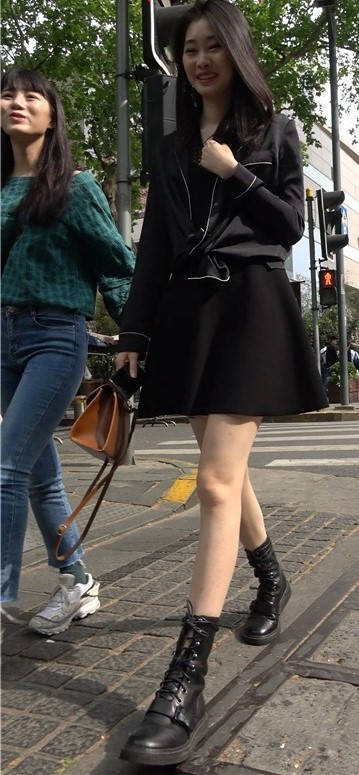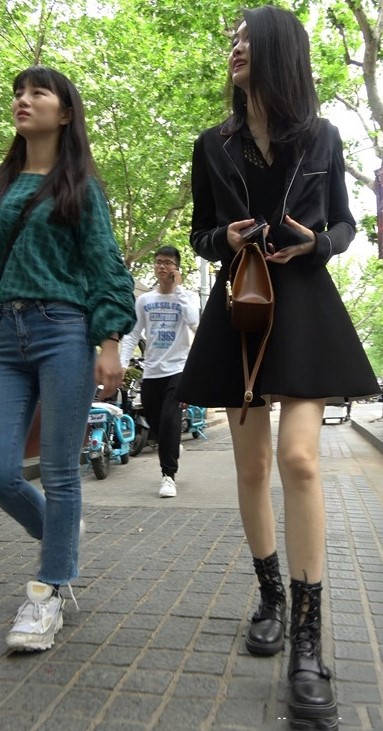 4k-黑色连衣裙漂亮美女街拍美腿 编号9454