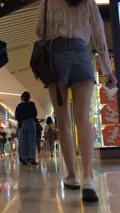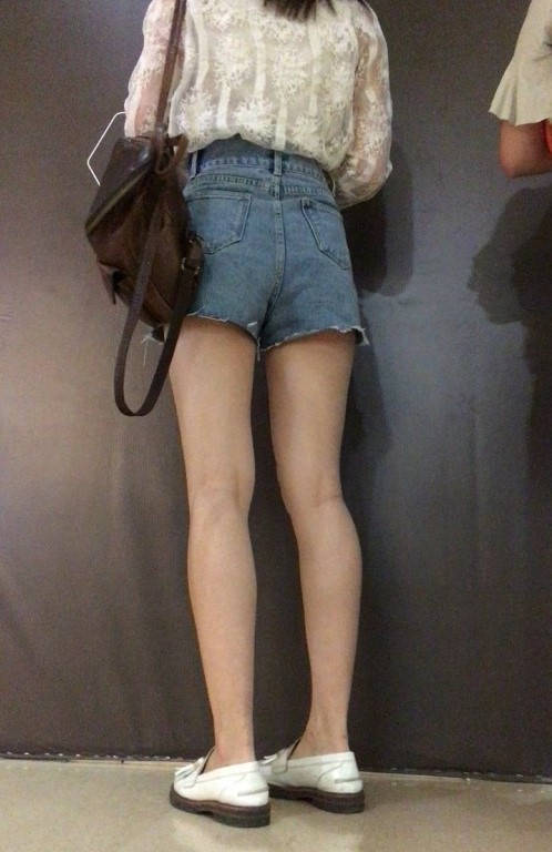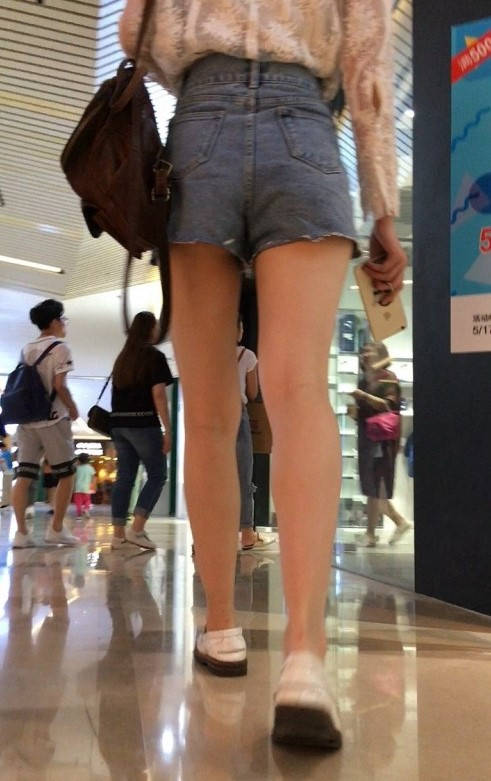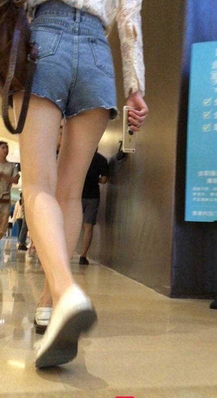 白色坡跟鞋热裤白皙双腿美眉 编号9154