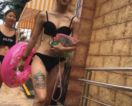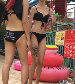 黑色比基尼纹身翘臀和双娇 编号9255