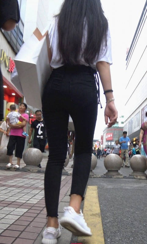 4K-超紧黑色牛仔大翘臀长发美女 编号9265