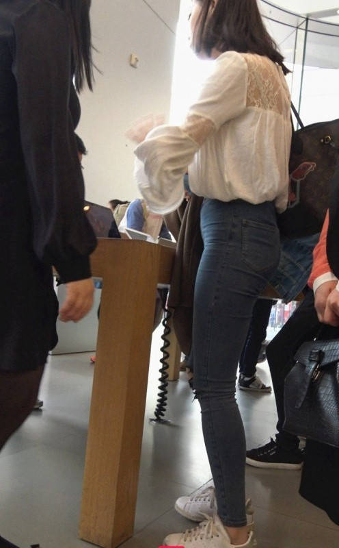 4K-苹果商店性感紧身牛仔裤饱满翘臀美女 编号9302