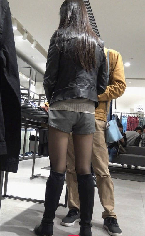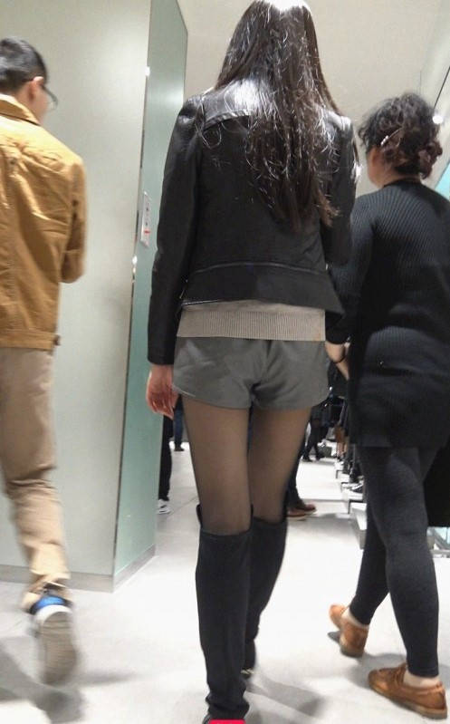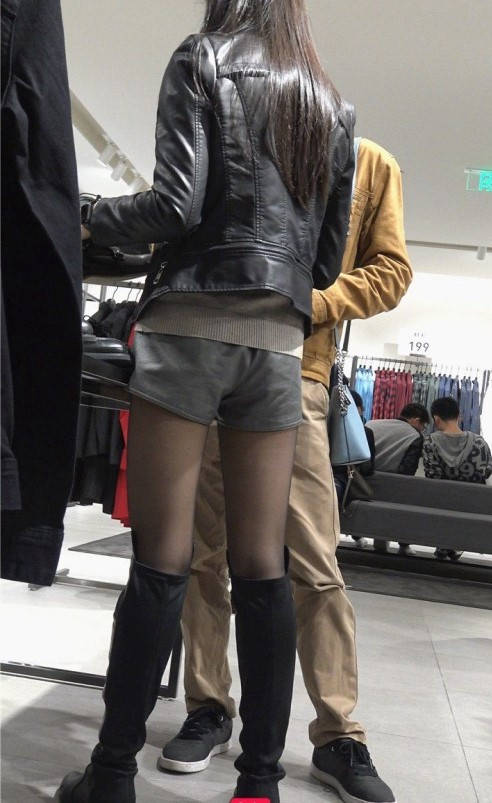 4K-商场跟拍短裤黑丝高筒靴MT妹子 编号9318