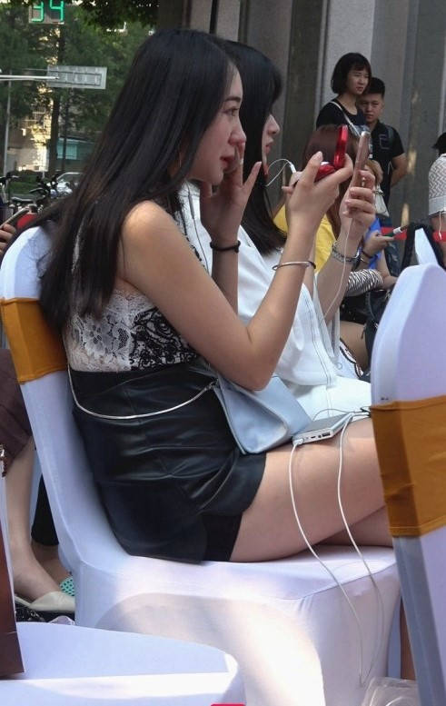 4K-黑色皮短裙极品漂亮美女 编号9331