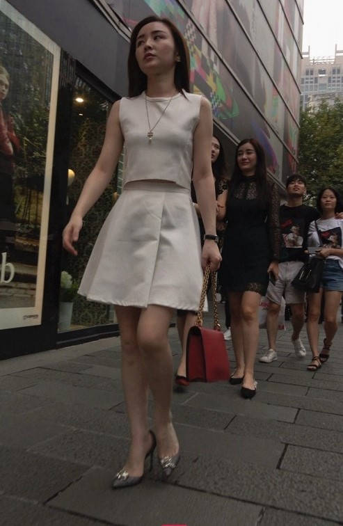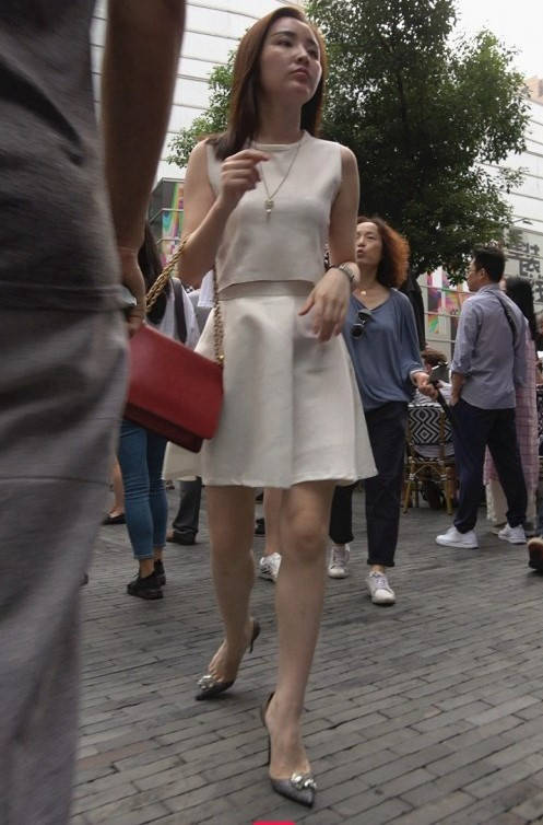 4K-气质连衣裙长腿高跟街拍美女 编号9332
