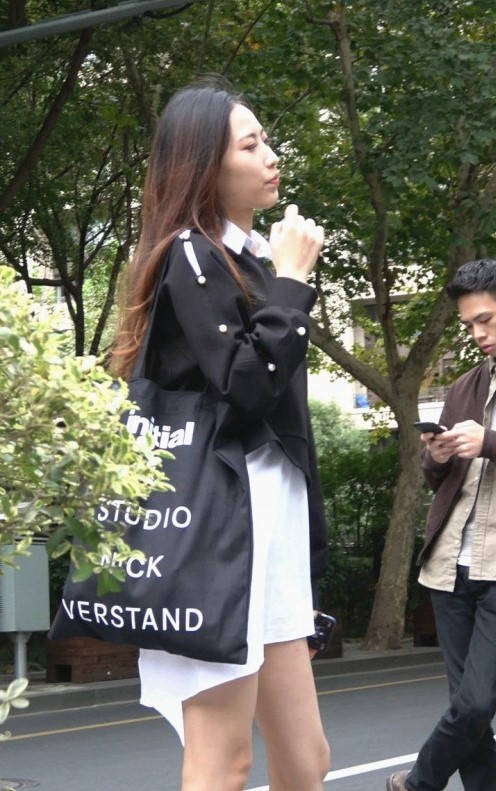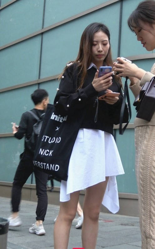 4K-白色连衣裙长腿皮靴街拍美女 编号9340