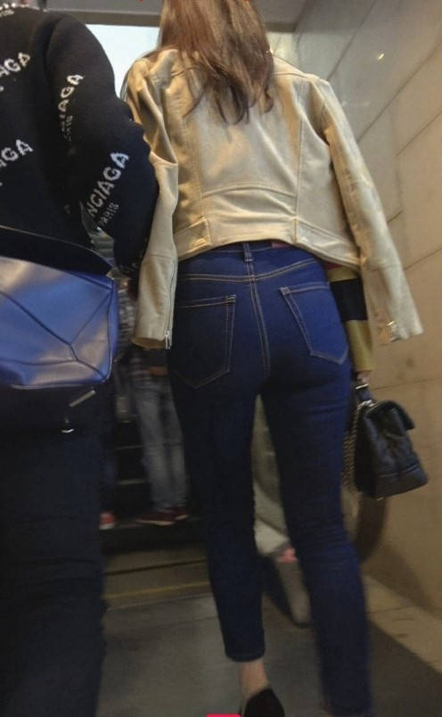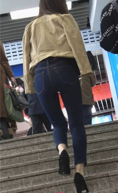 4K-蓝色紧绷牛仔裤漂亮翘臀极品美女 编号9341