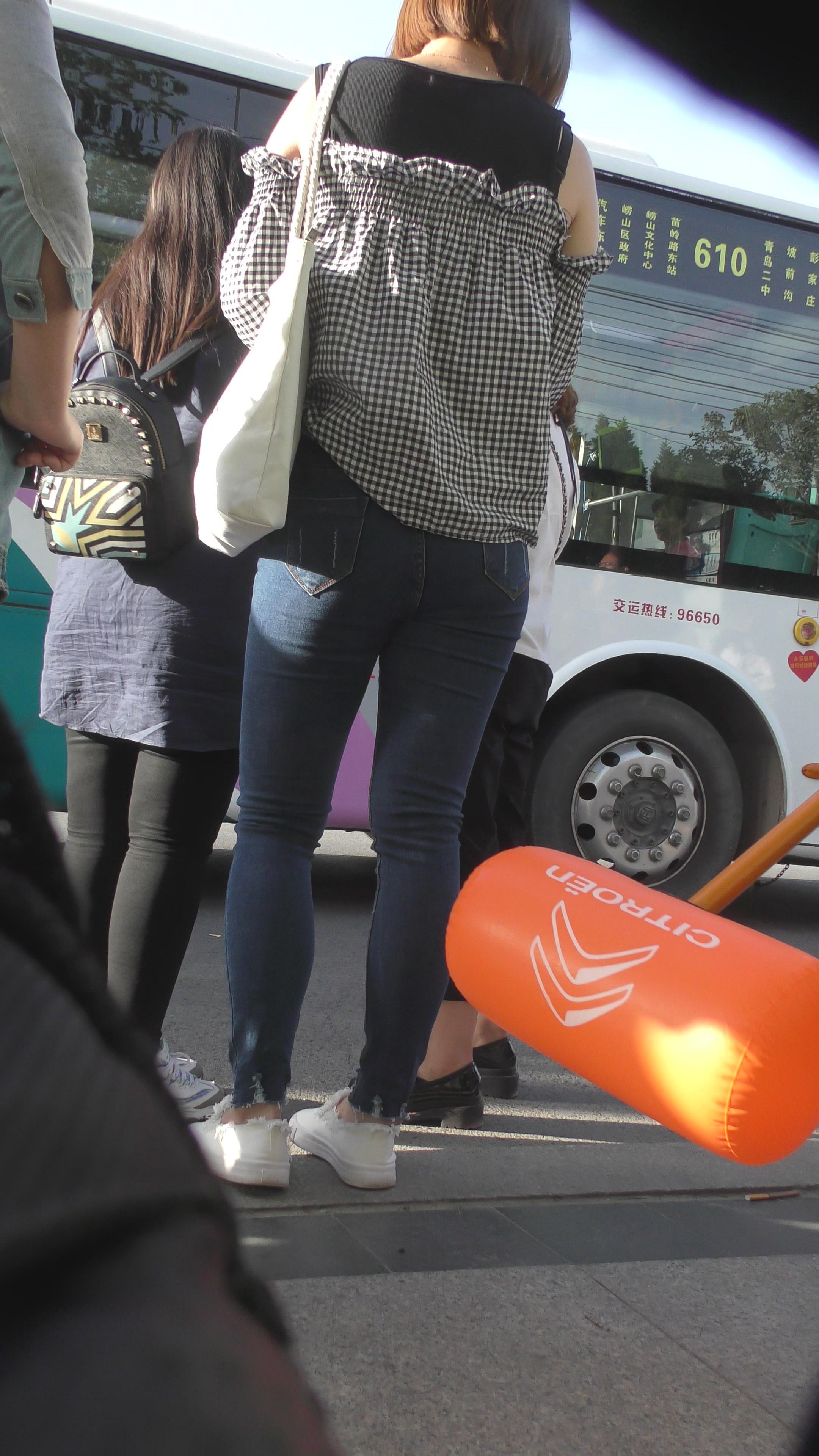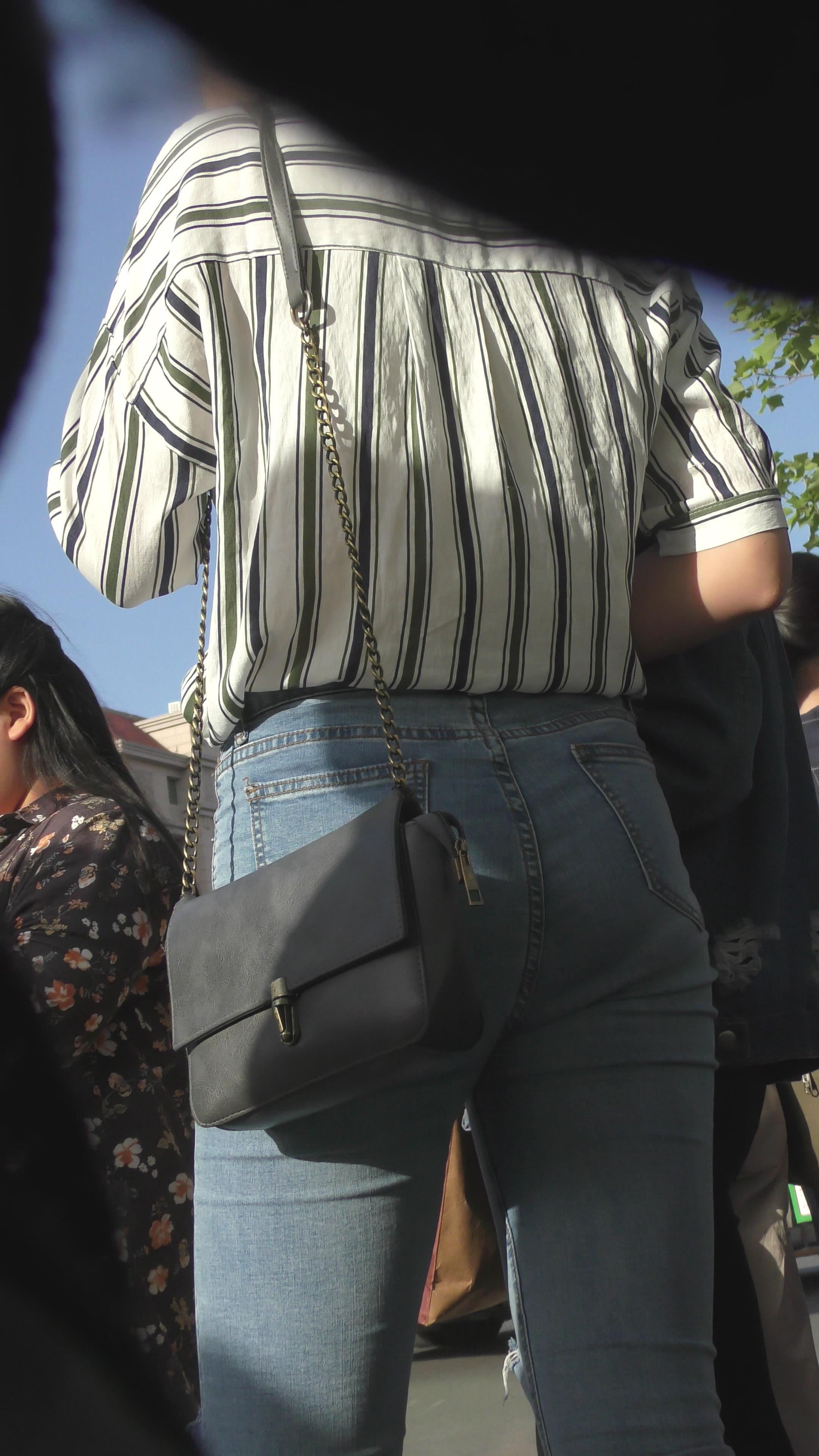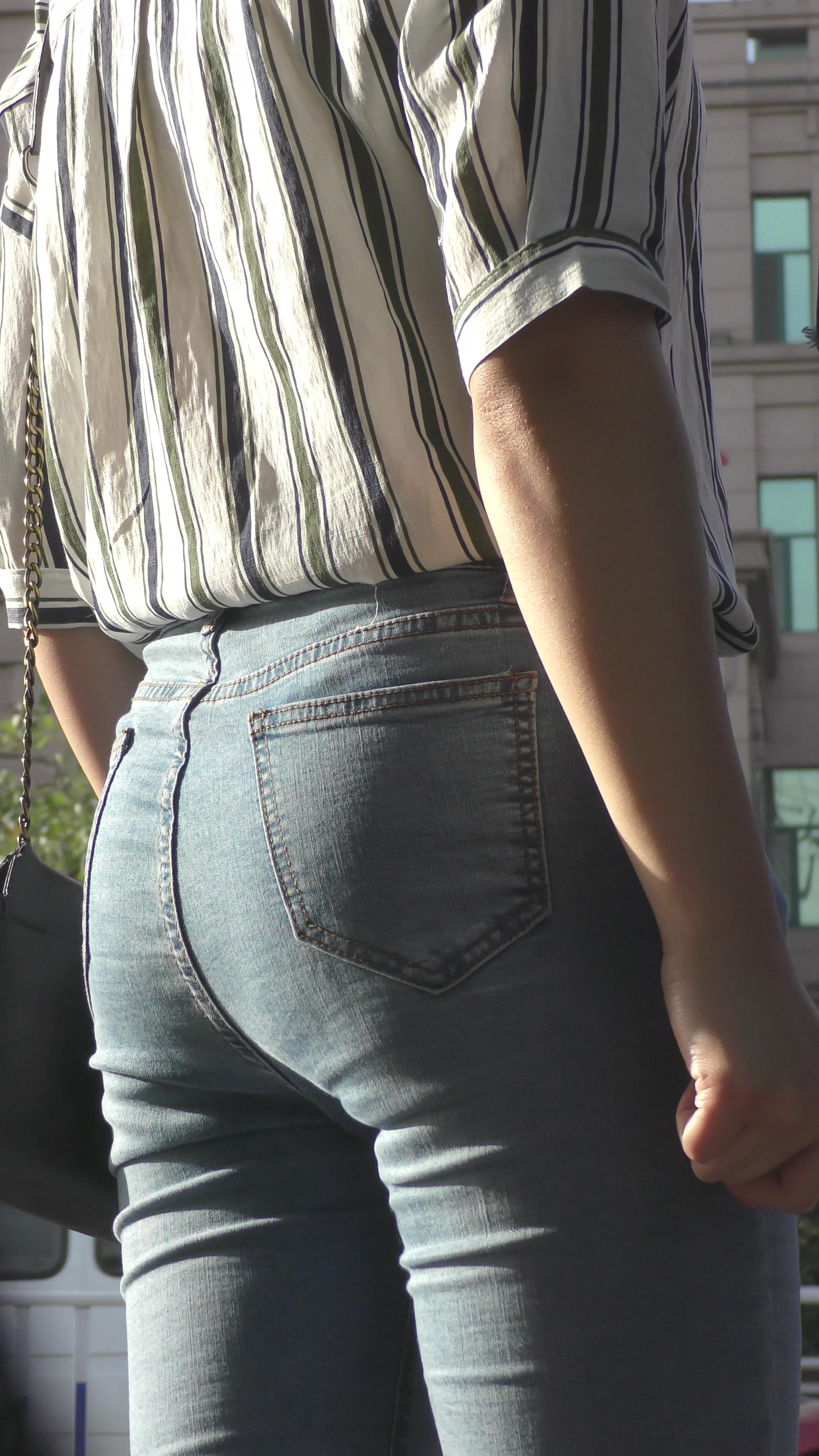 4K 街拍条纹衬衫紧身牛仔美女姐姐 编号3174