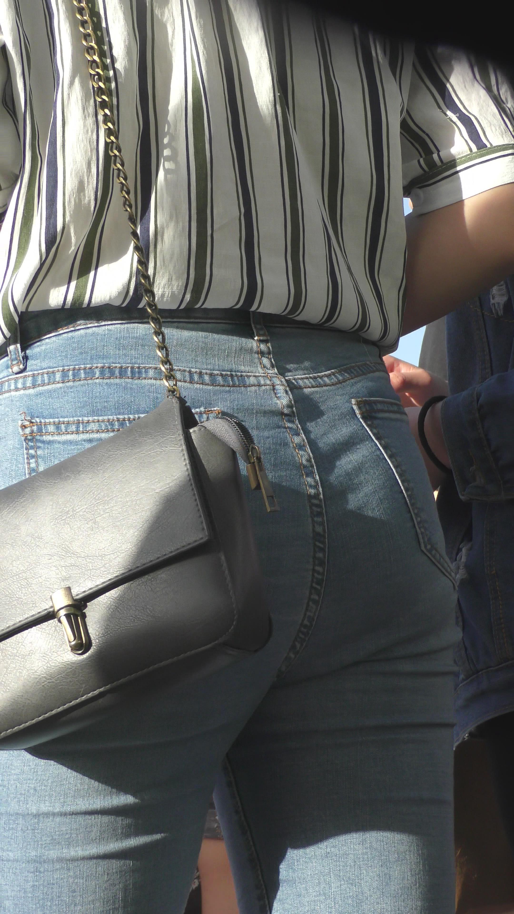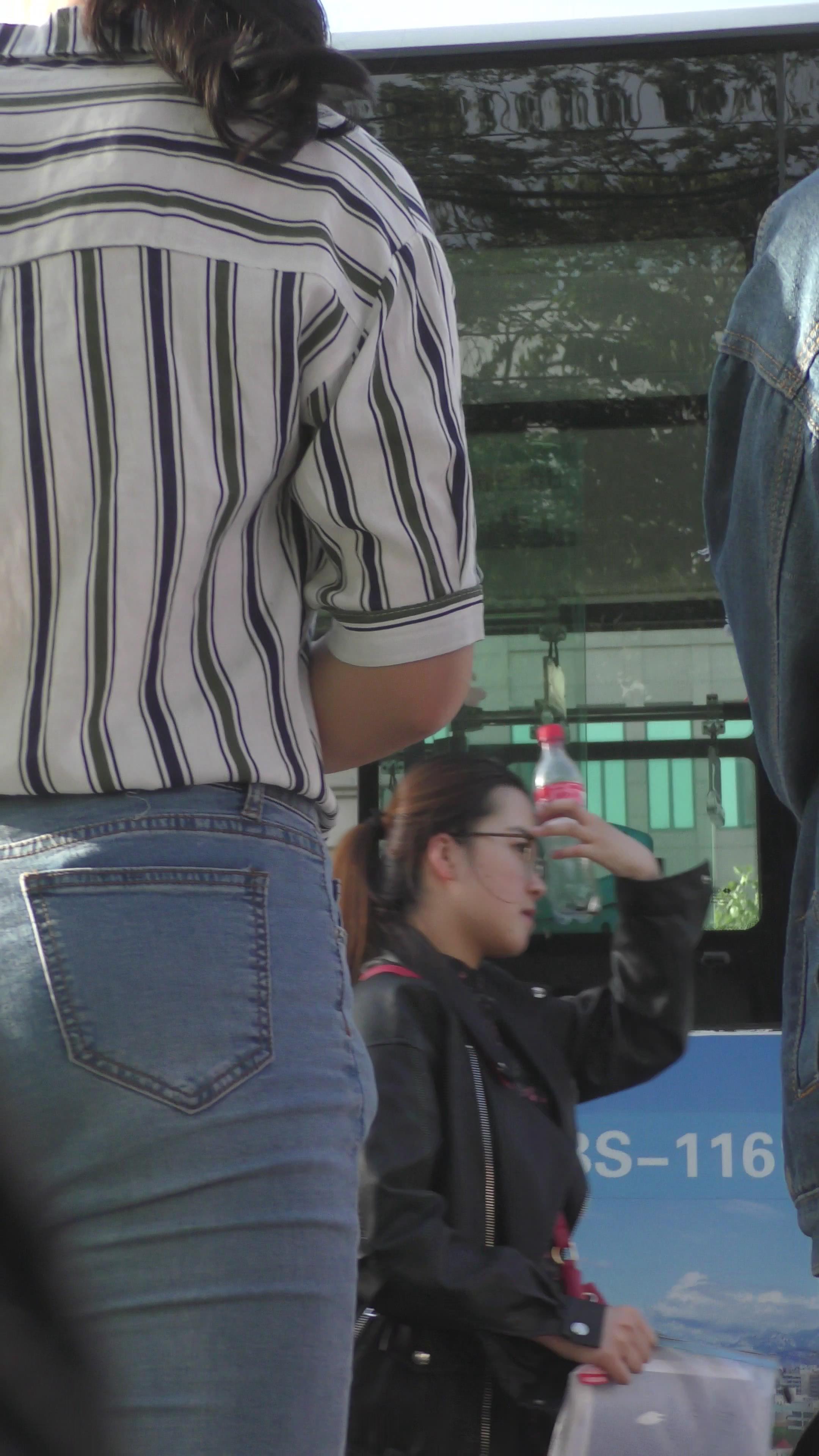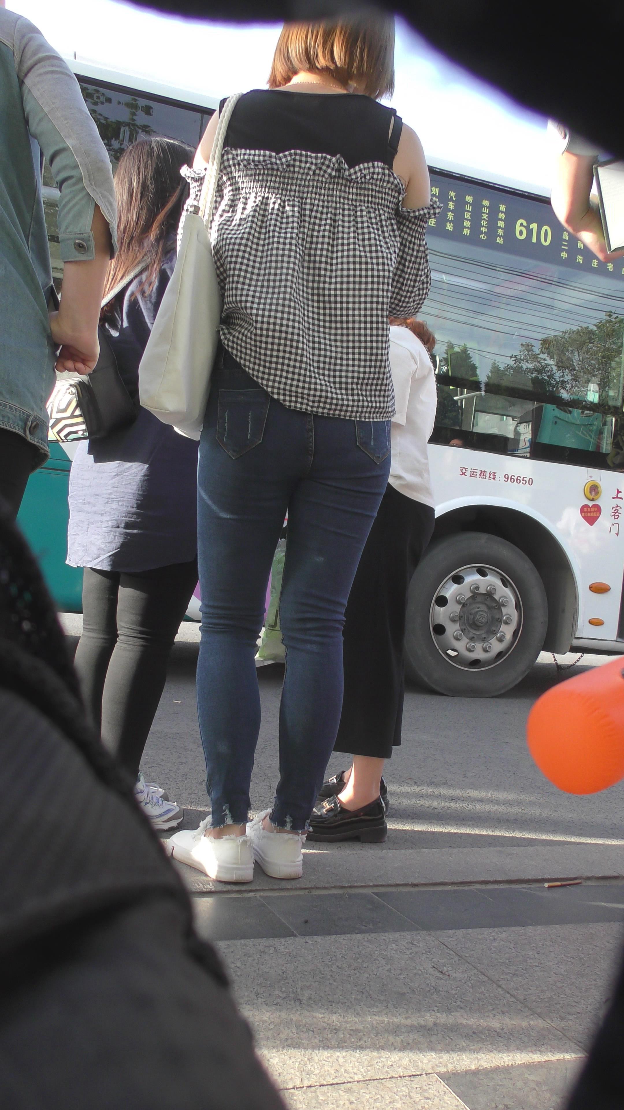 4K 街拍条纹衬衫紧身牛仔美女姐姐 编号3174