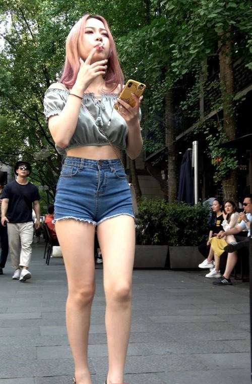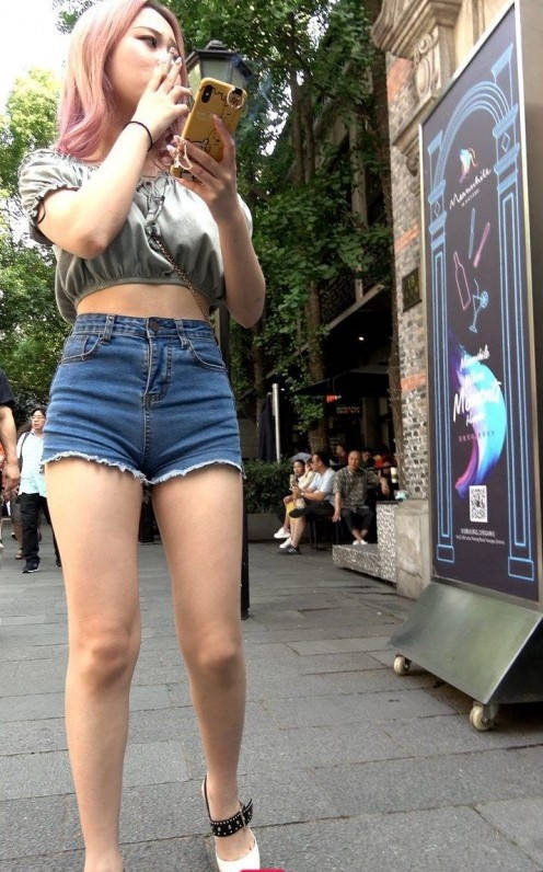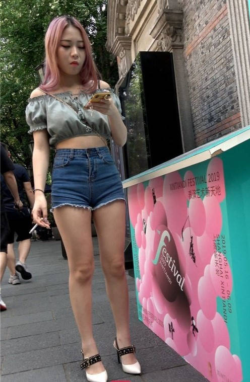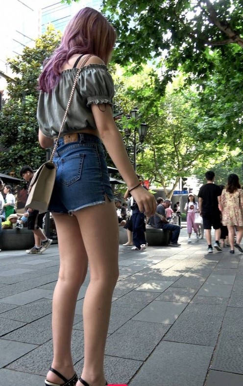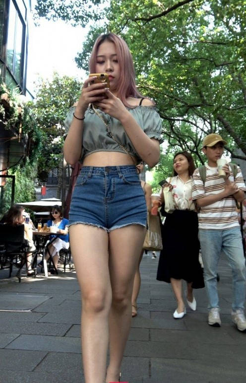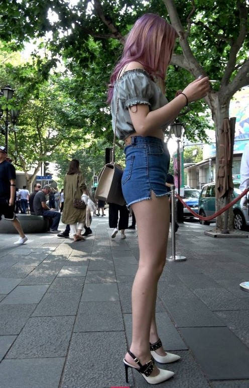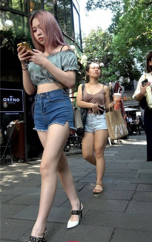 4K-性感热裤长腿街拍高跟美女 编号9353
