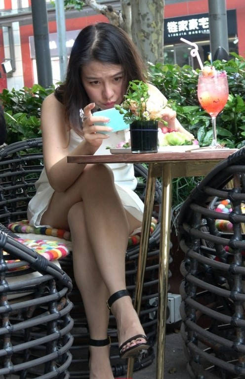 4K-性感白色连衣裙长腿街拍高跟美女 编号9358