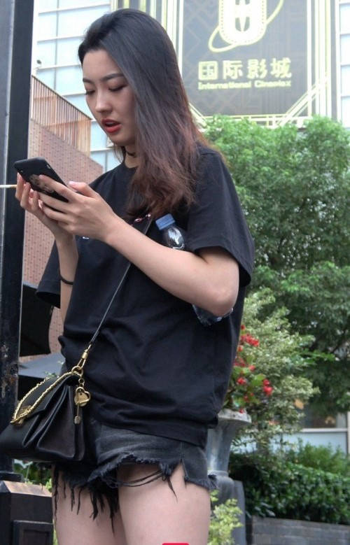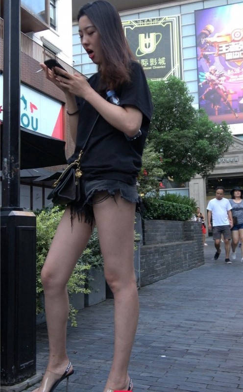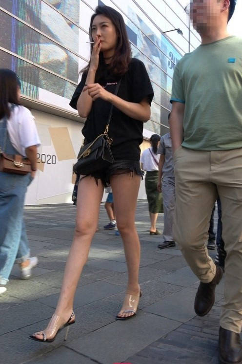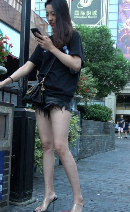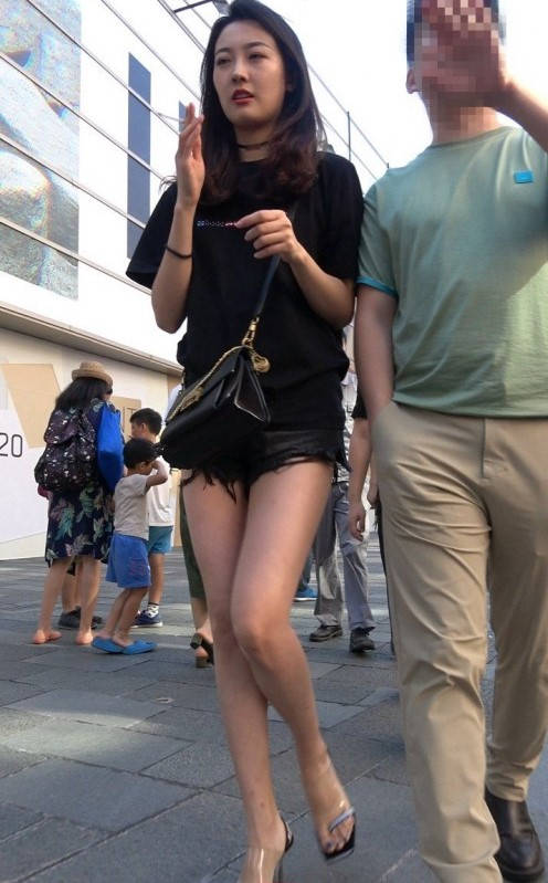 4K-性感紧身街拍热裤大长腿美女 编号9362