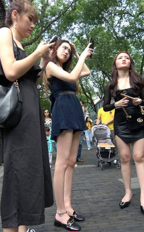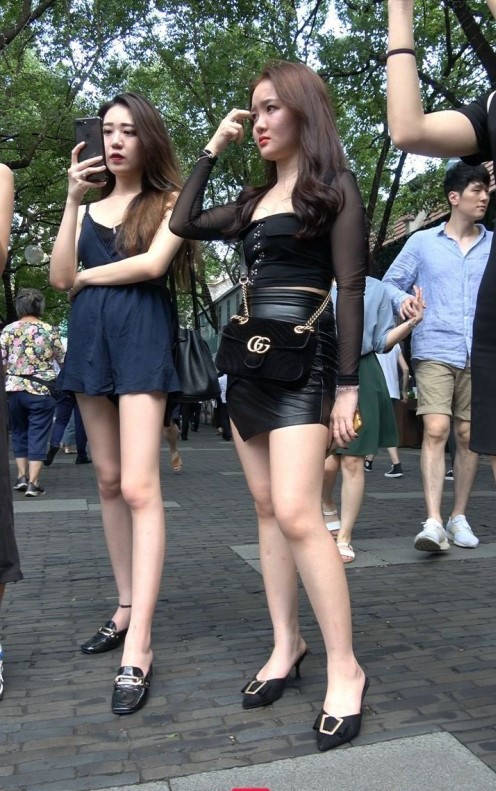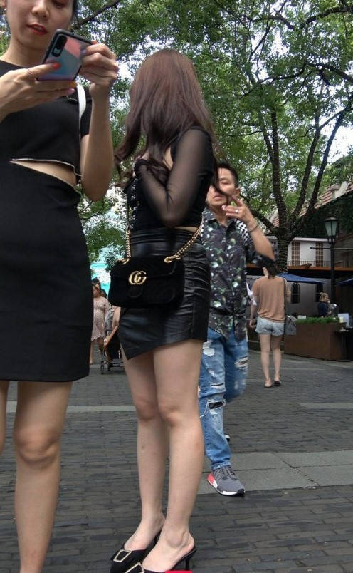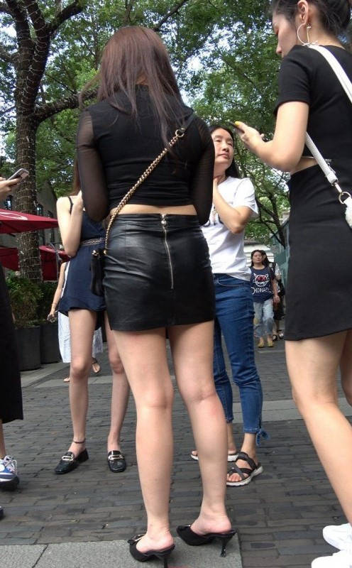 4K-性感包屯皮短裙街拍高跟美女 编号9363