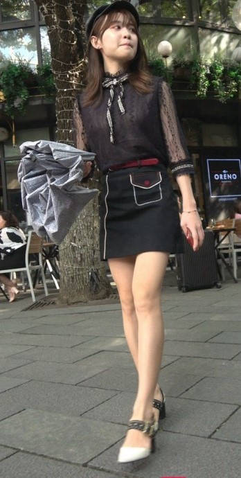 4K-性感短裙长腿街拍高跟美女 编号9377