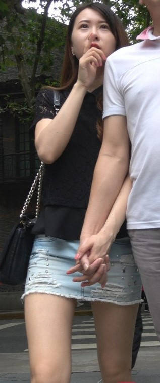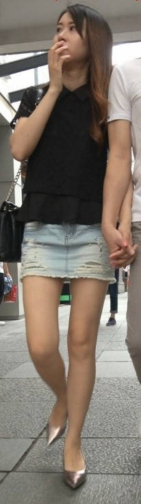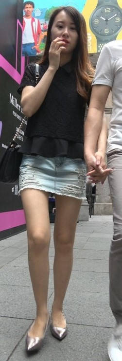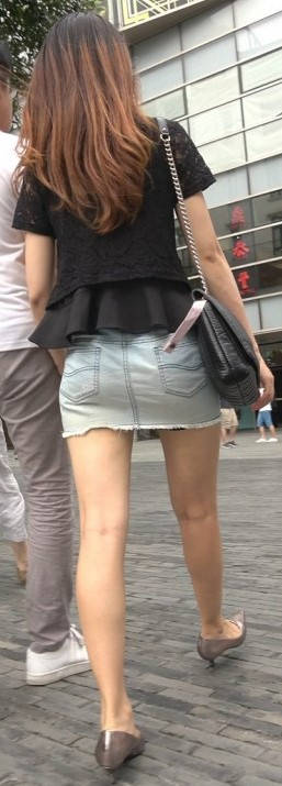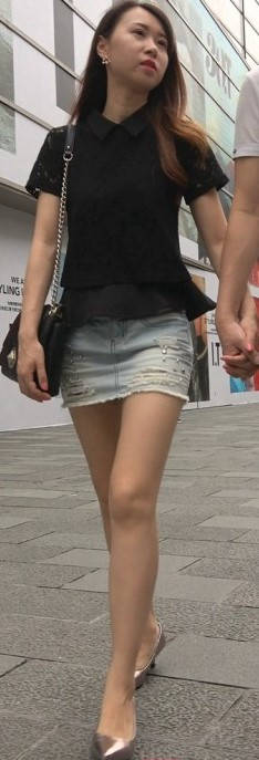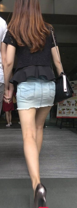 K-性感牛仔短裙长腿街拍美女 编号9381