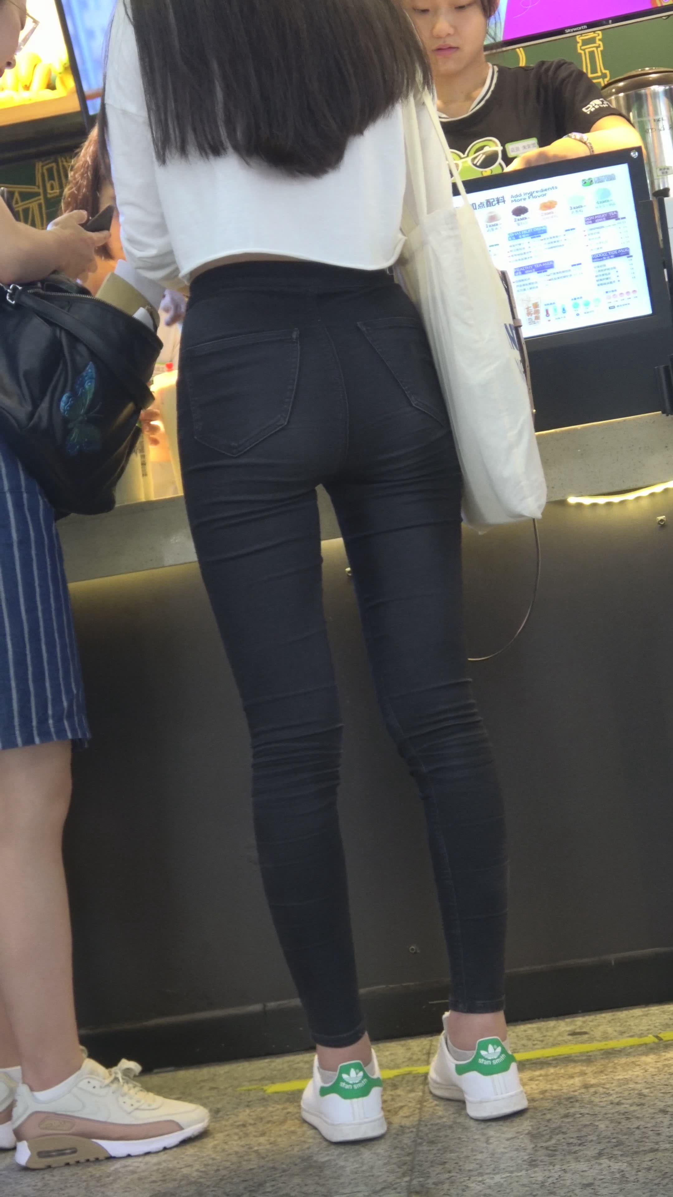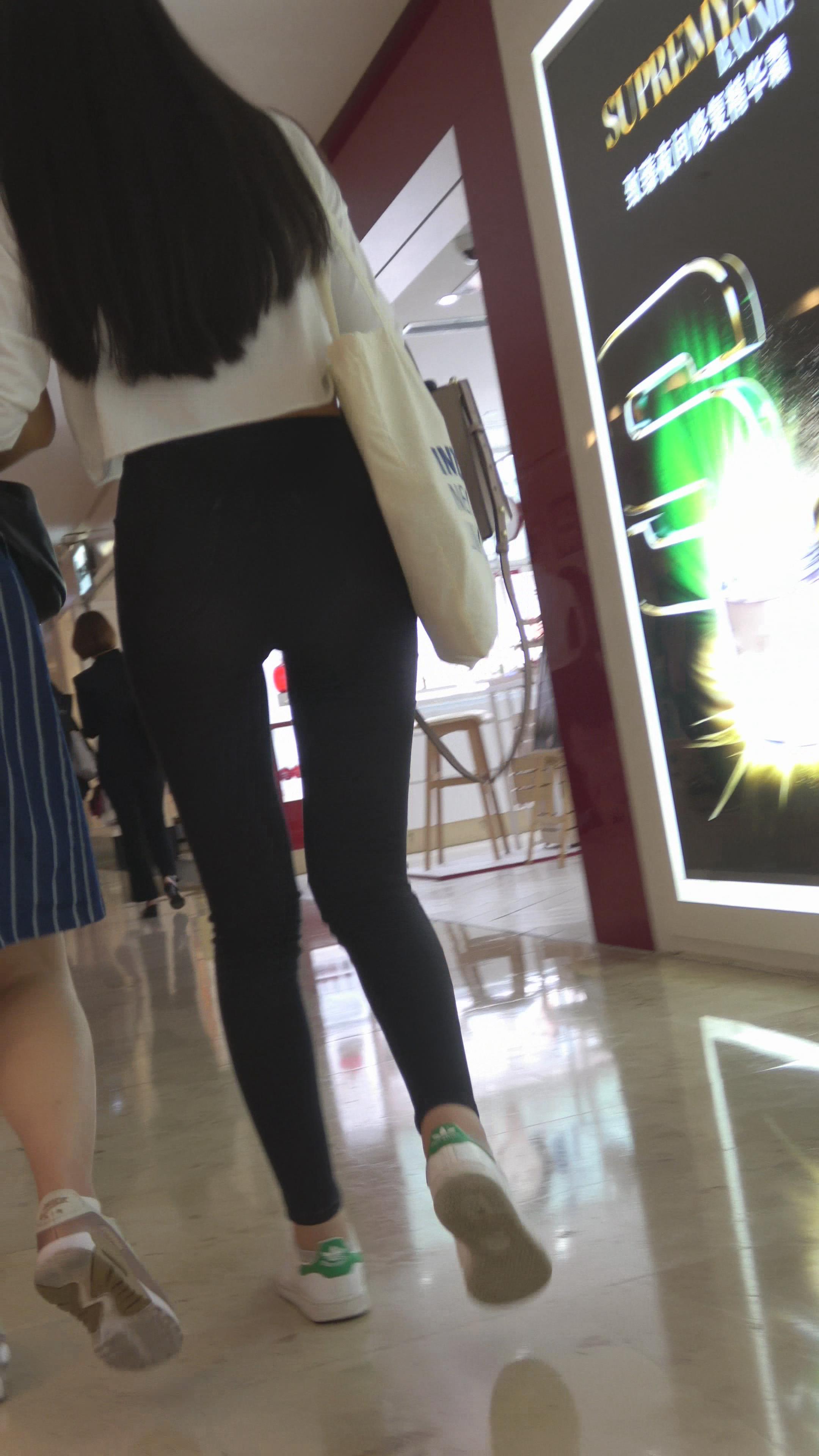 4K 黑色紧身裤蜜桃臀街拍美女 编号3178