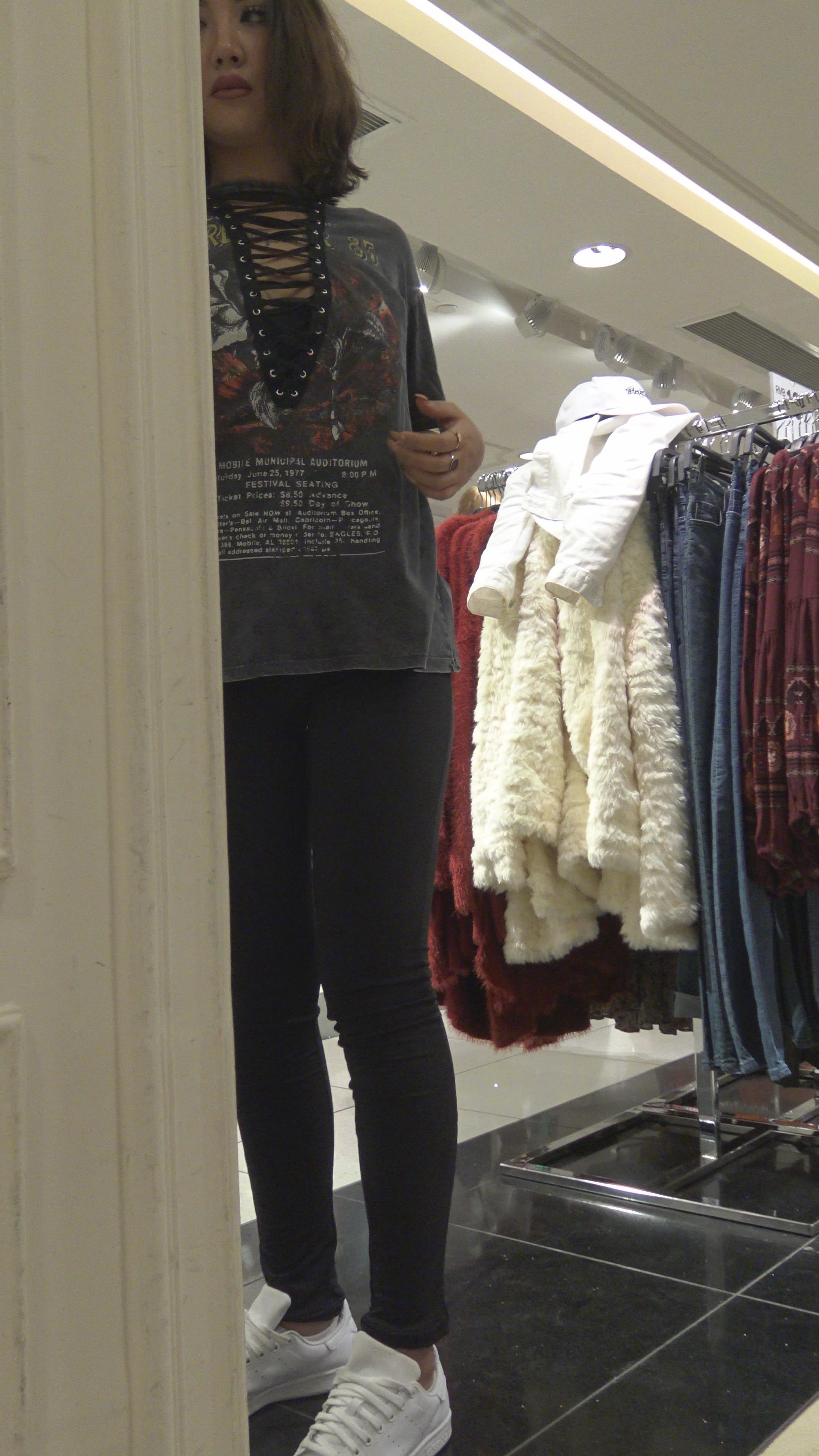 4K - 街拍黑色紧身裤美女试衣服 编号3189
