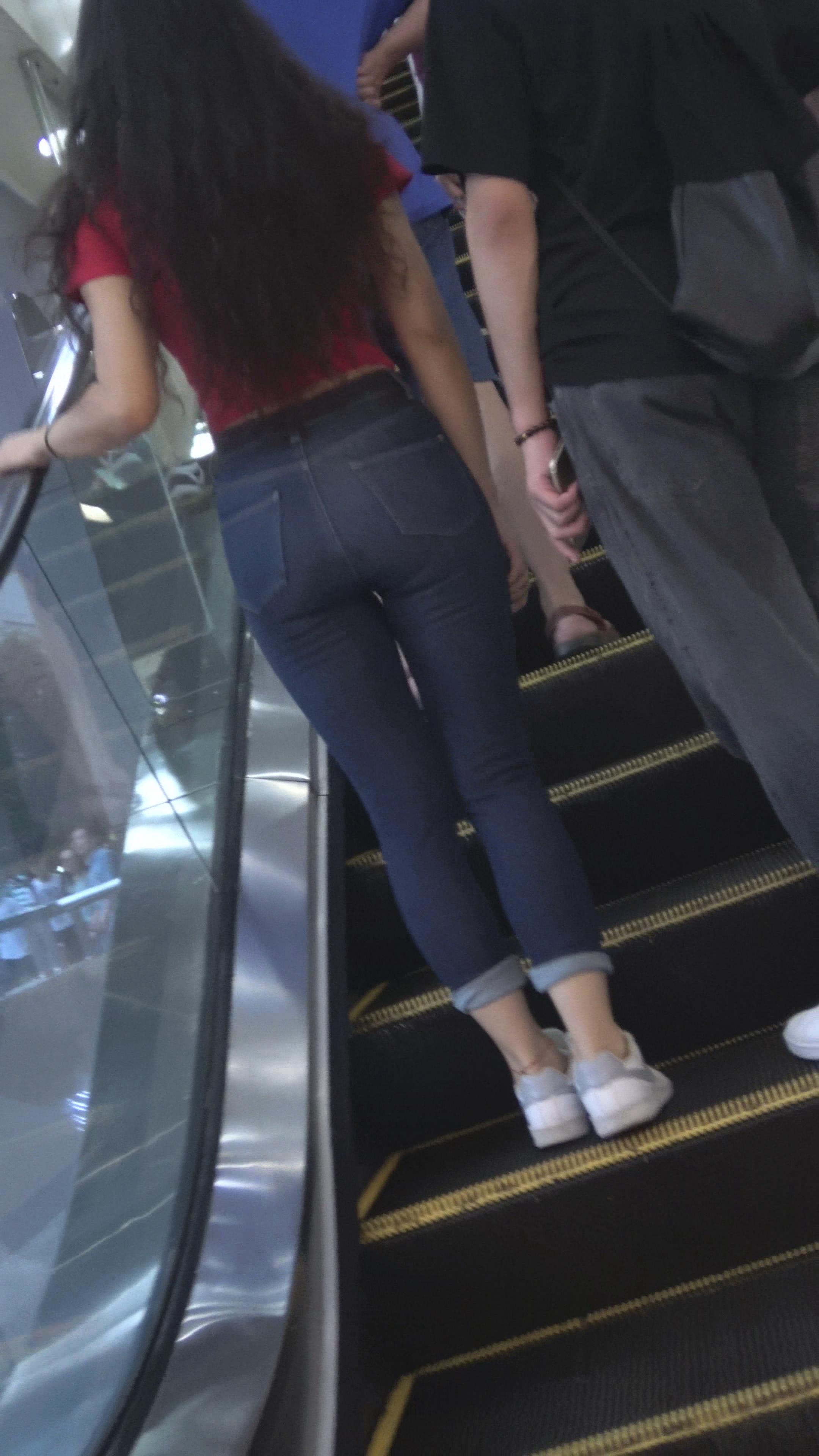 4K - 跟拍超紧绷蓝色牛仔裤美女 编号3190