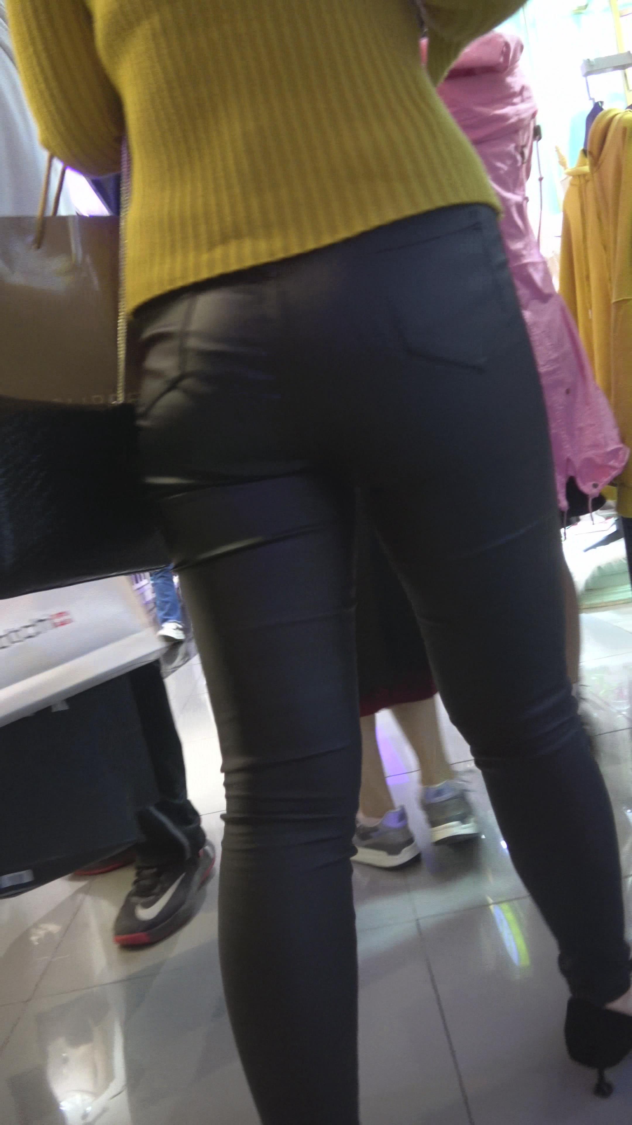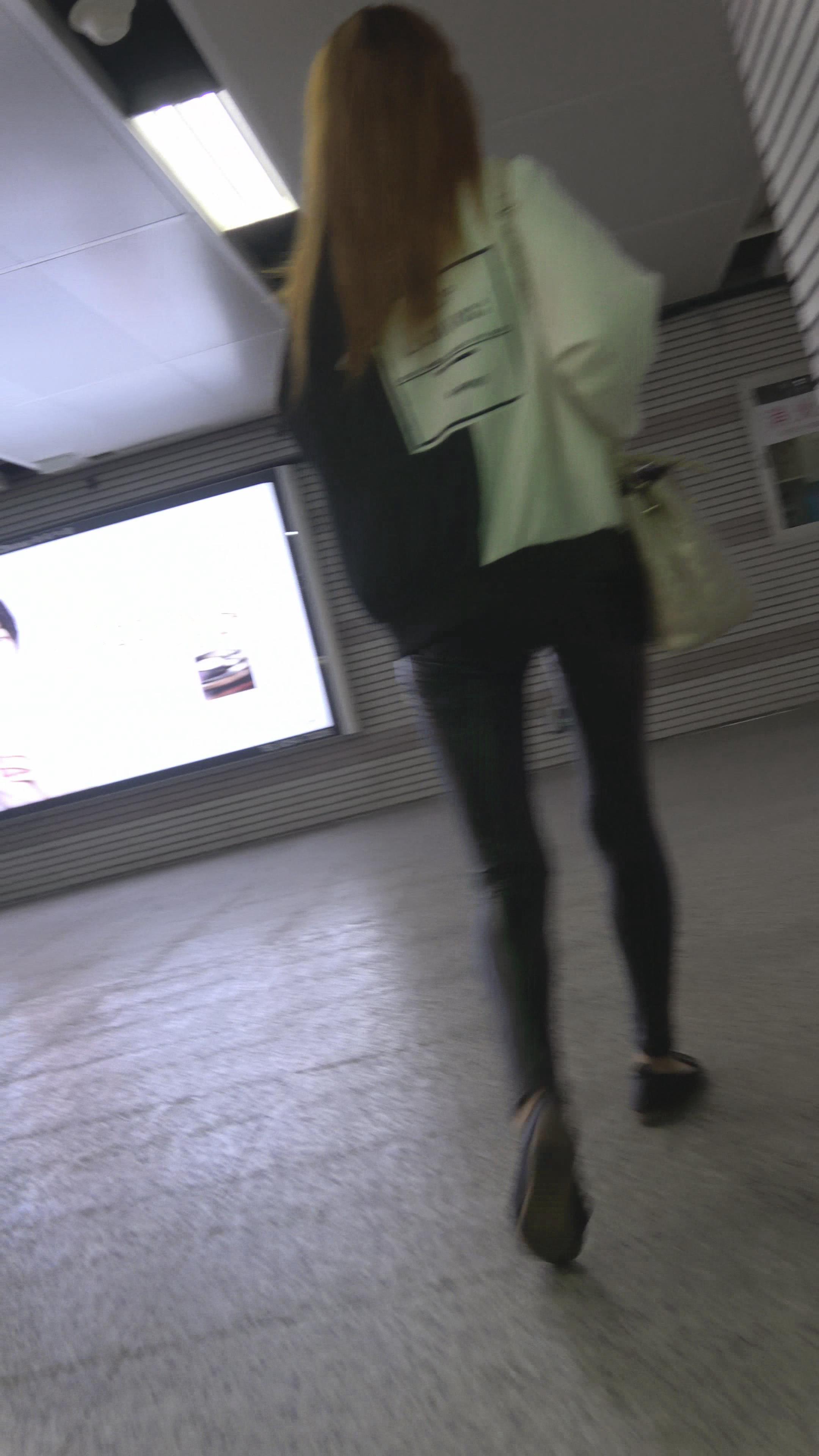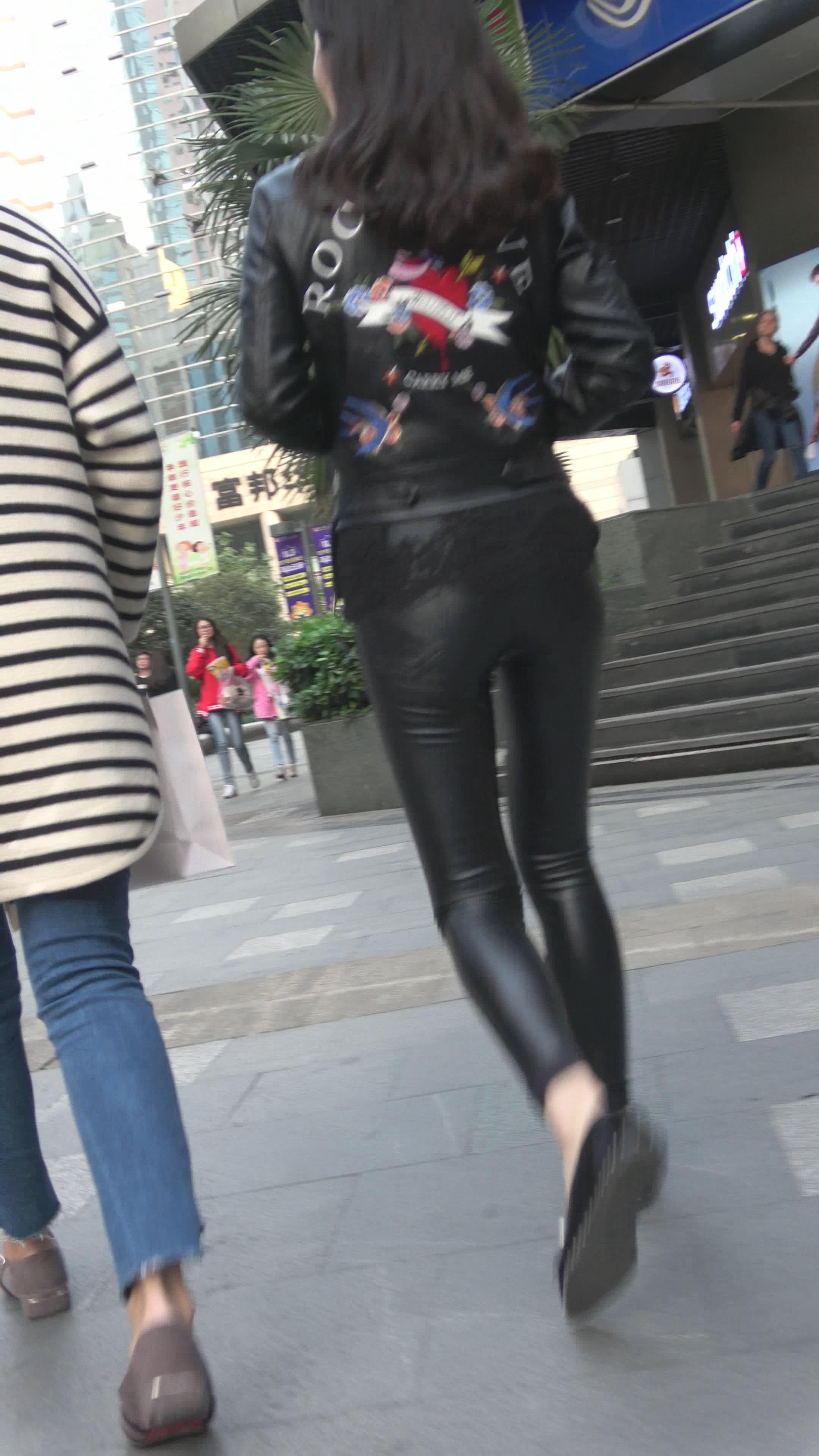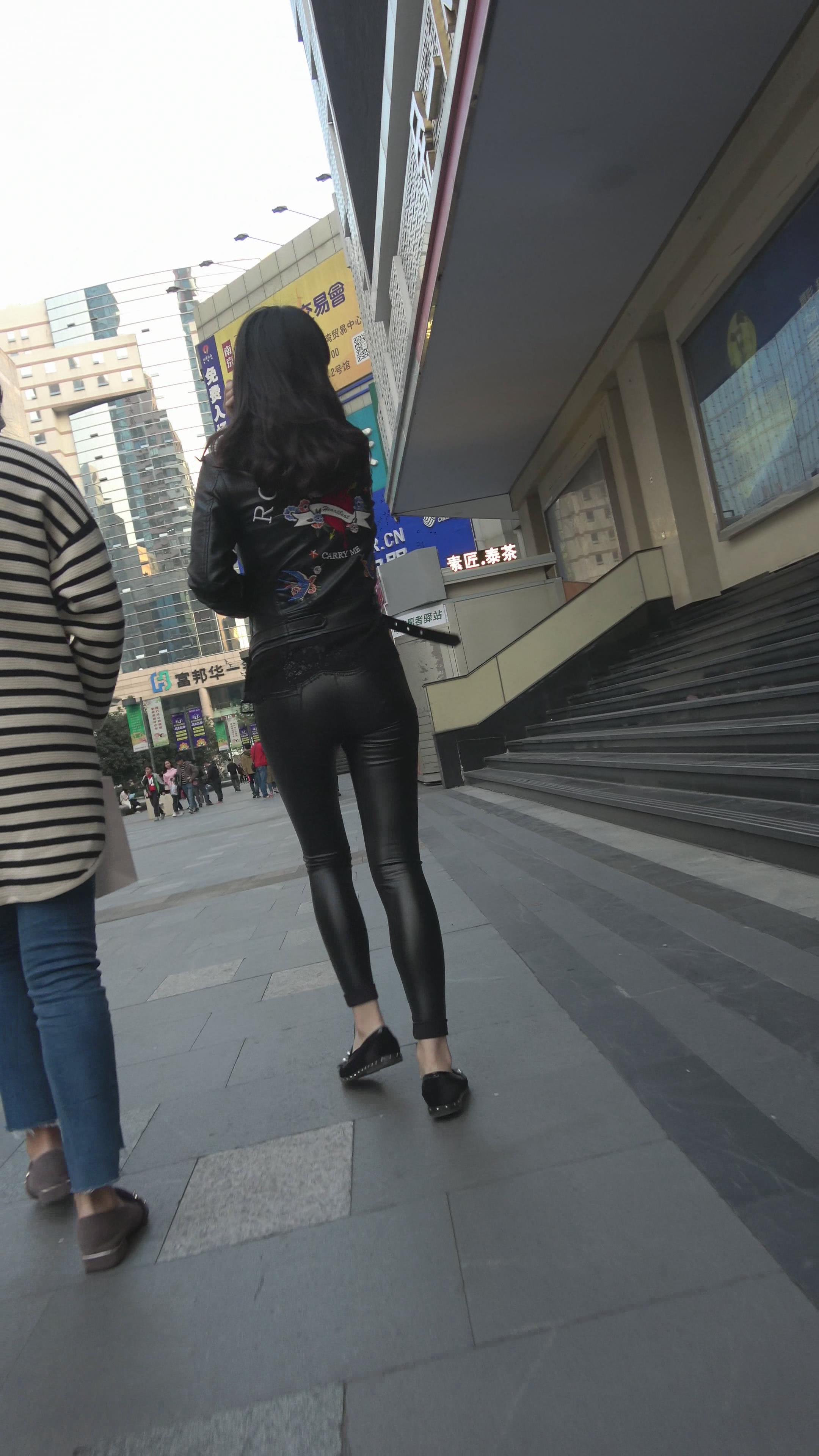 街拍黑色紧身裤美眉逛街 编号3205