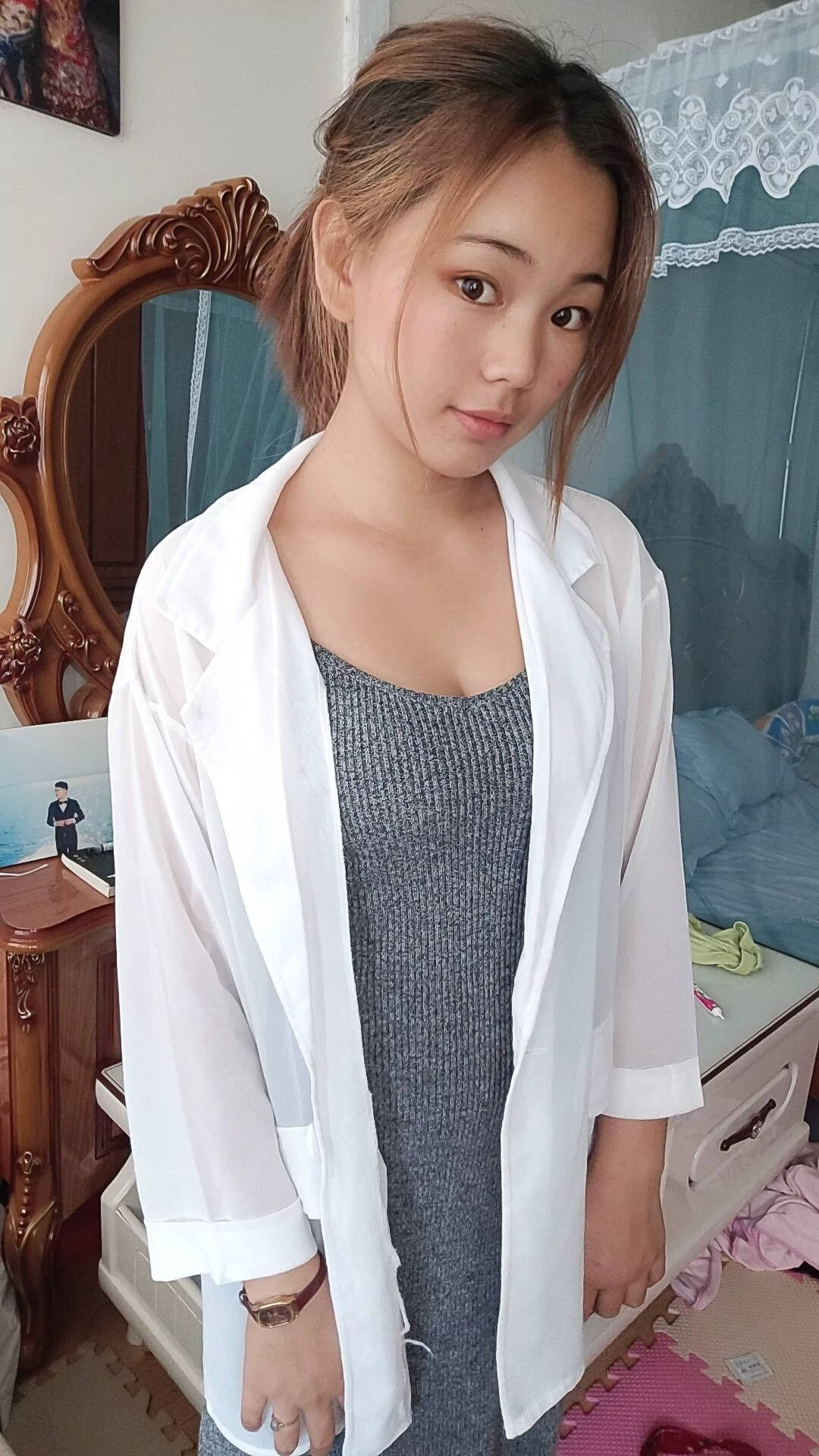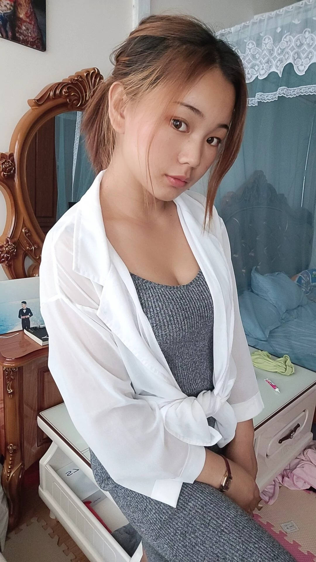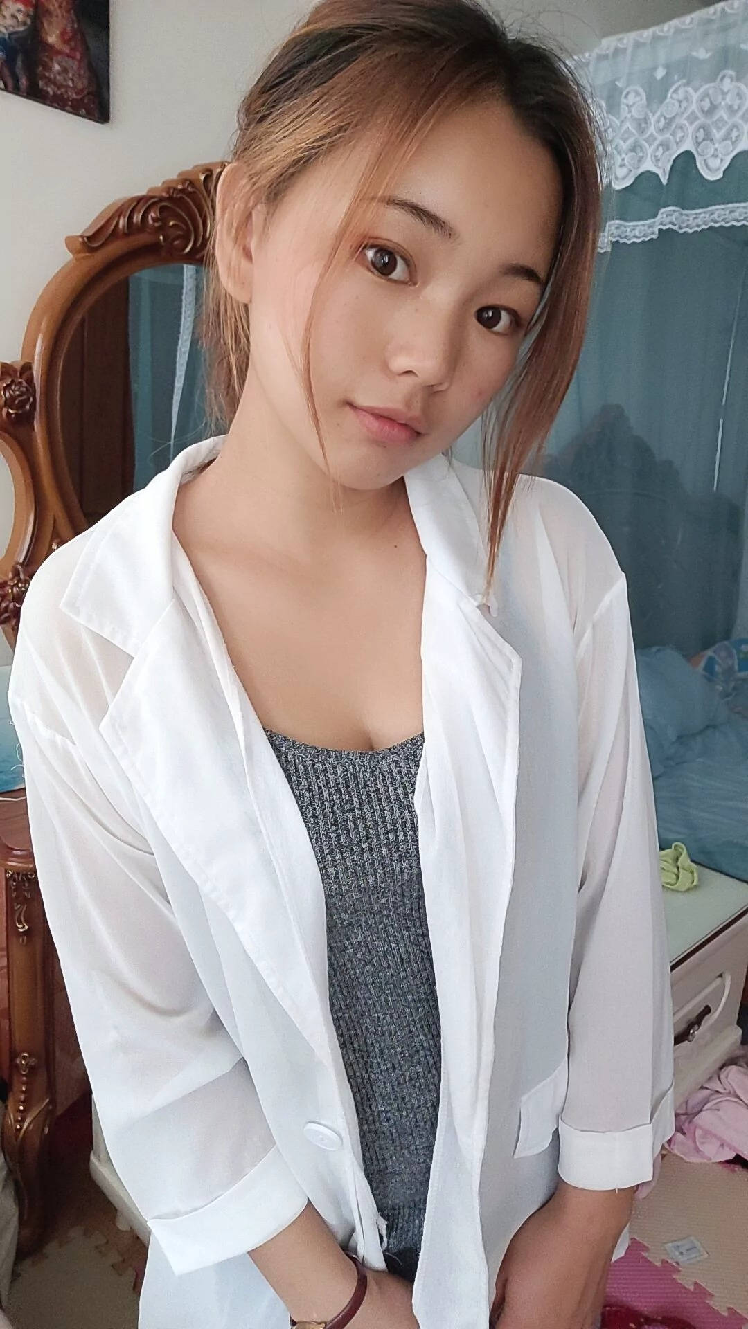 街拍下蹲少风妇低胸吊带睡衣无罩露点SN95