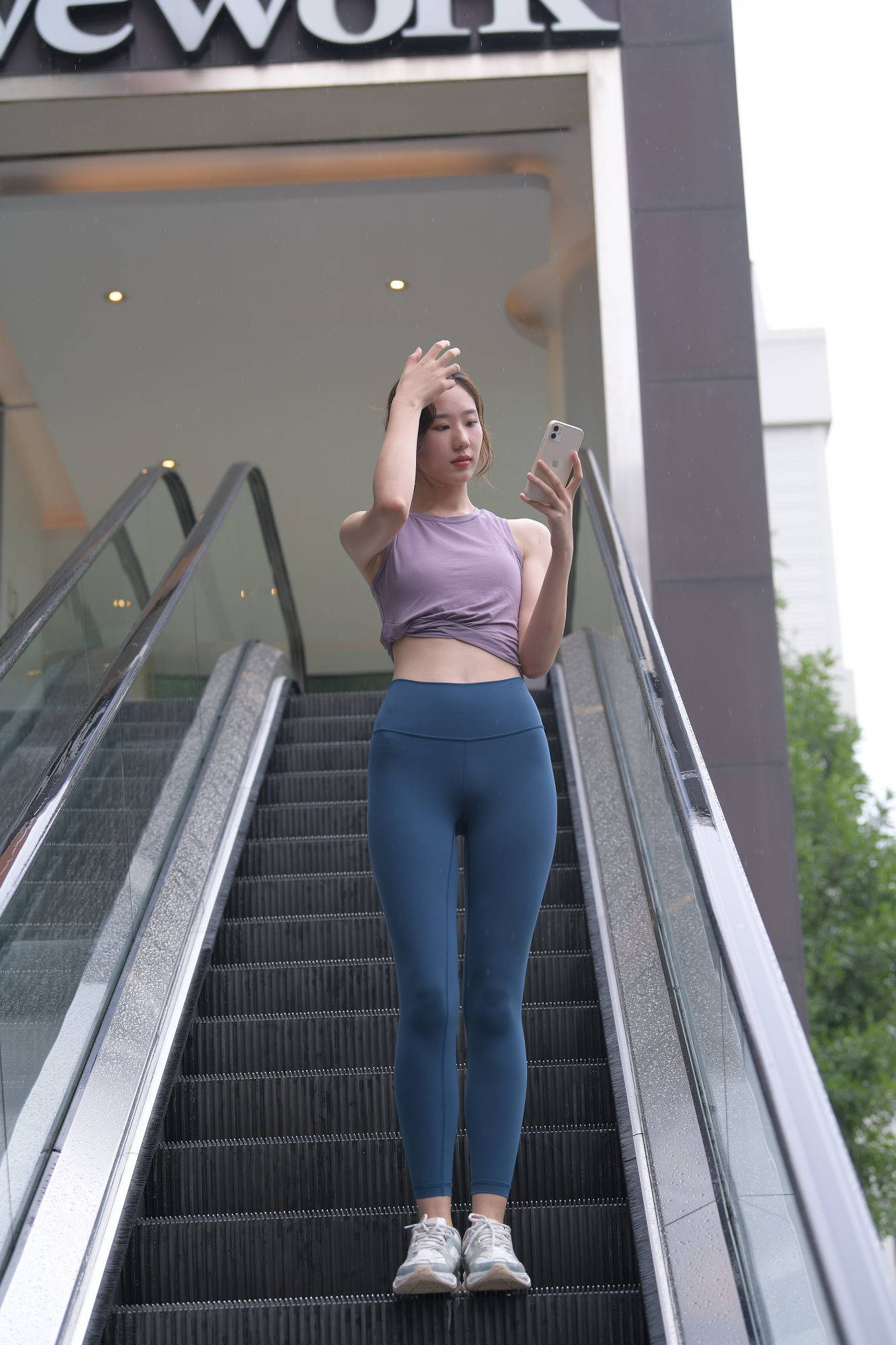 蓝色瑜伽裤运动系高挑美女 编号1031