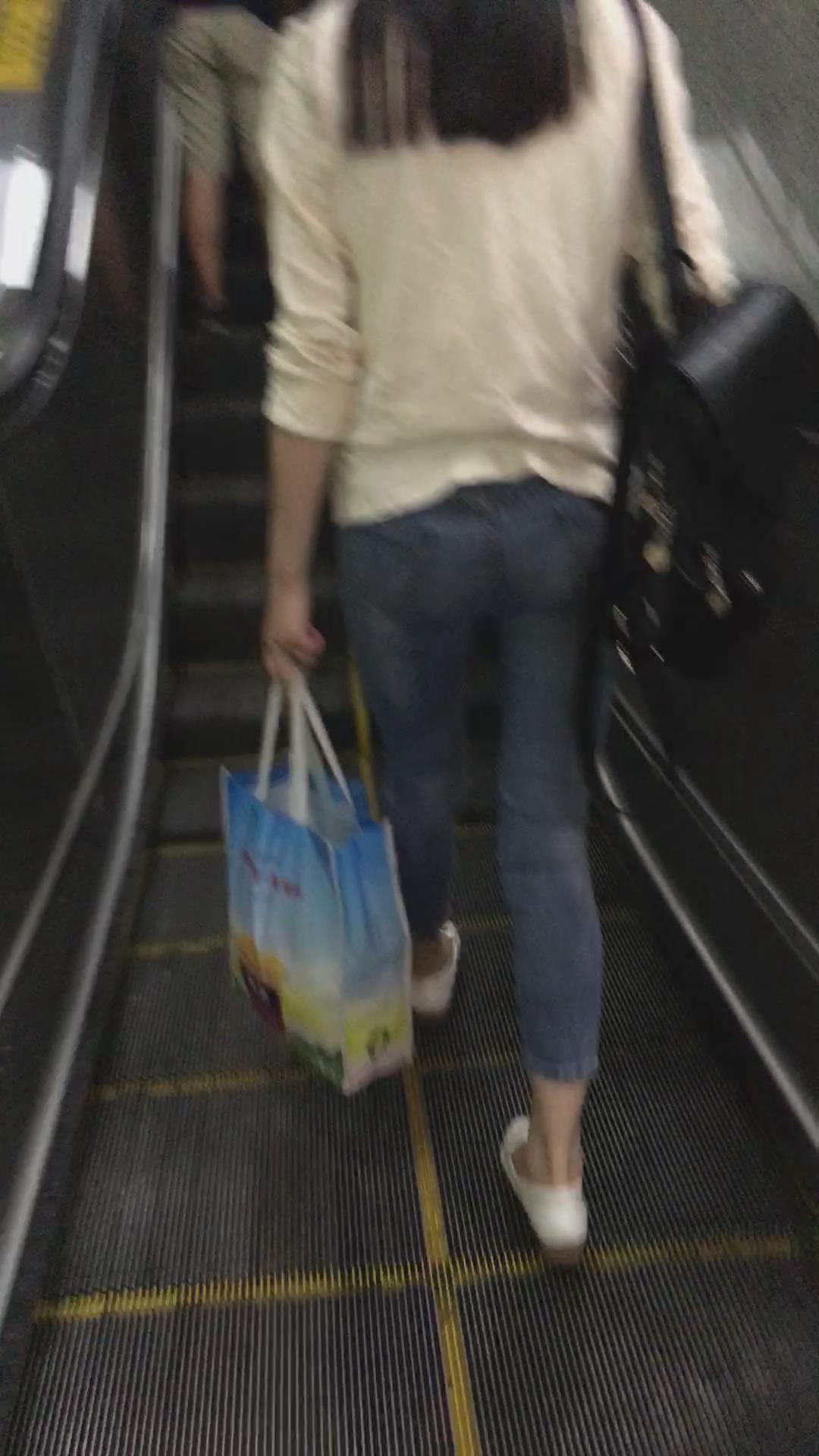 4k-刚下地铁的紧身蓝色牛仔裤小美女 编号3242