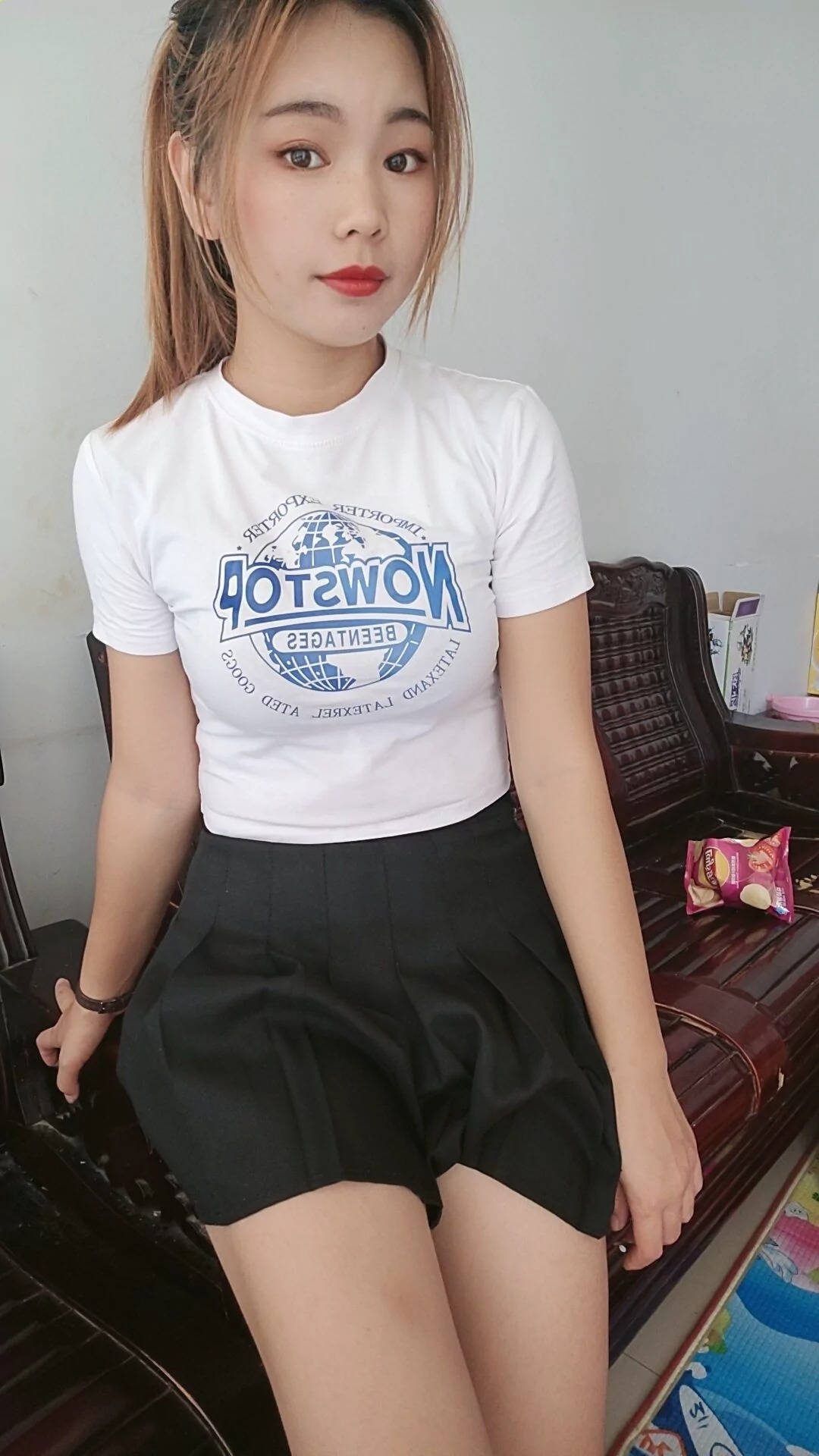 地铁站候车的黑色短裤黑色丝袜性感大长腿美女SN163