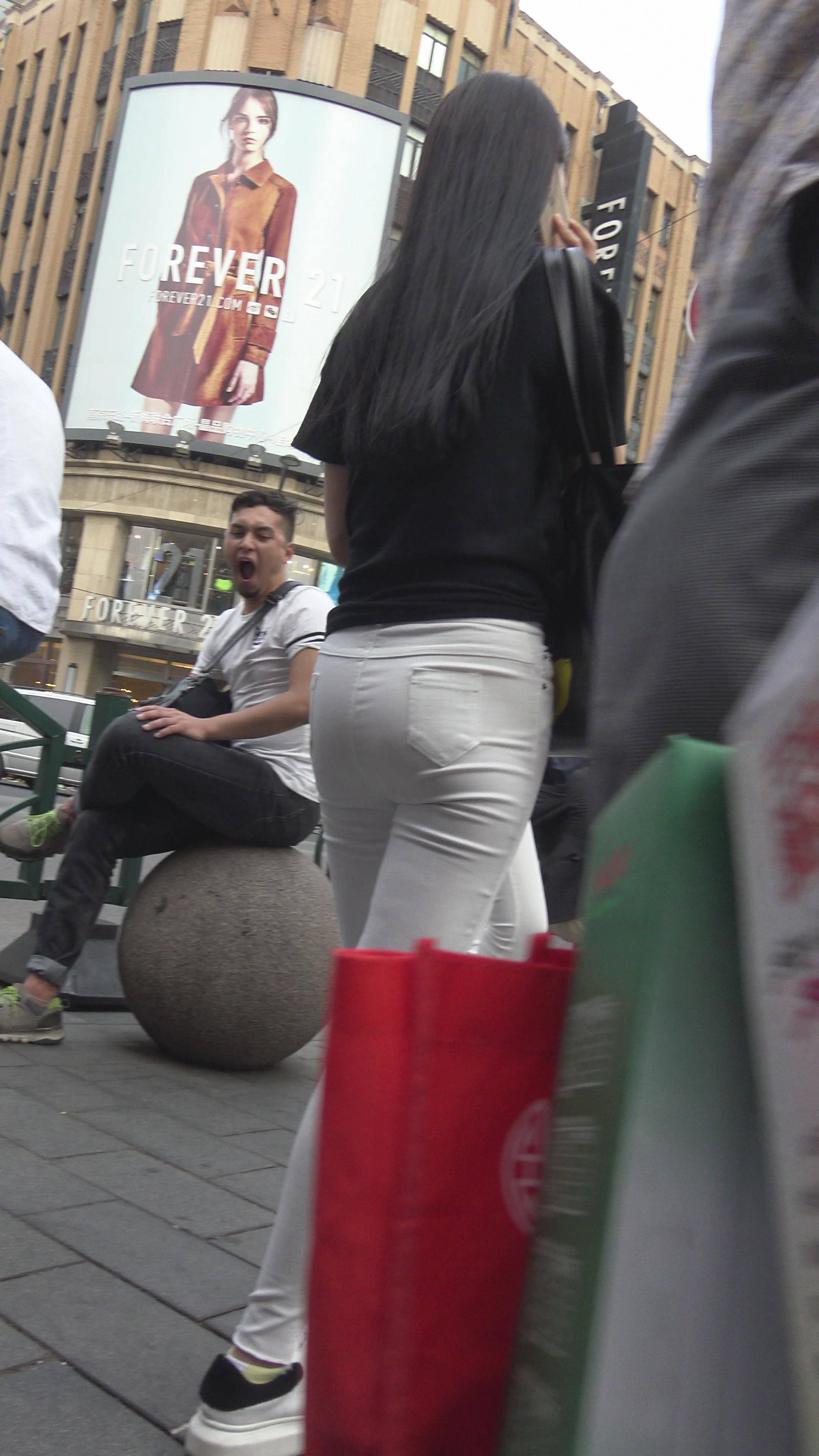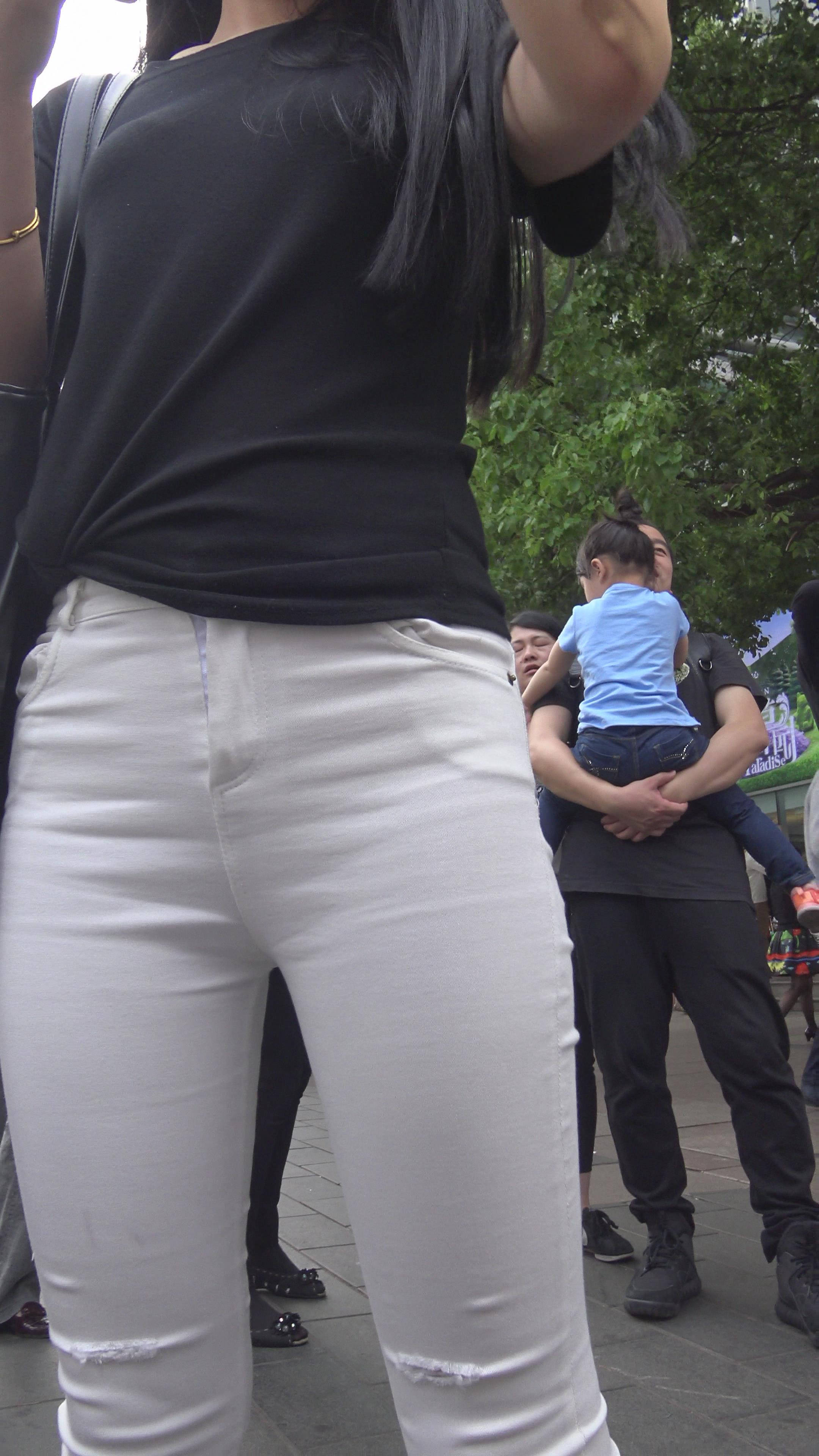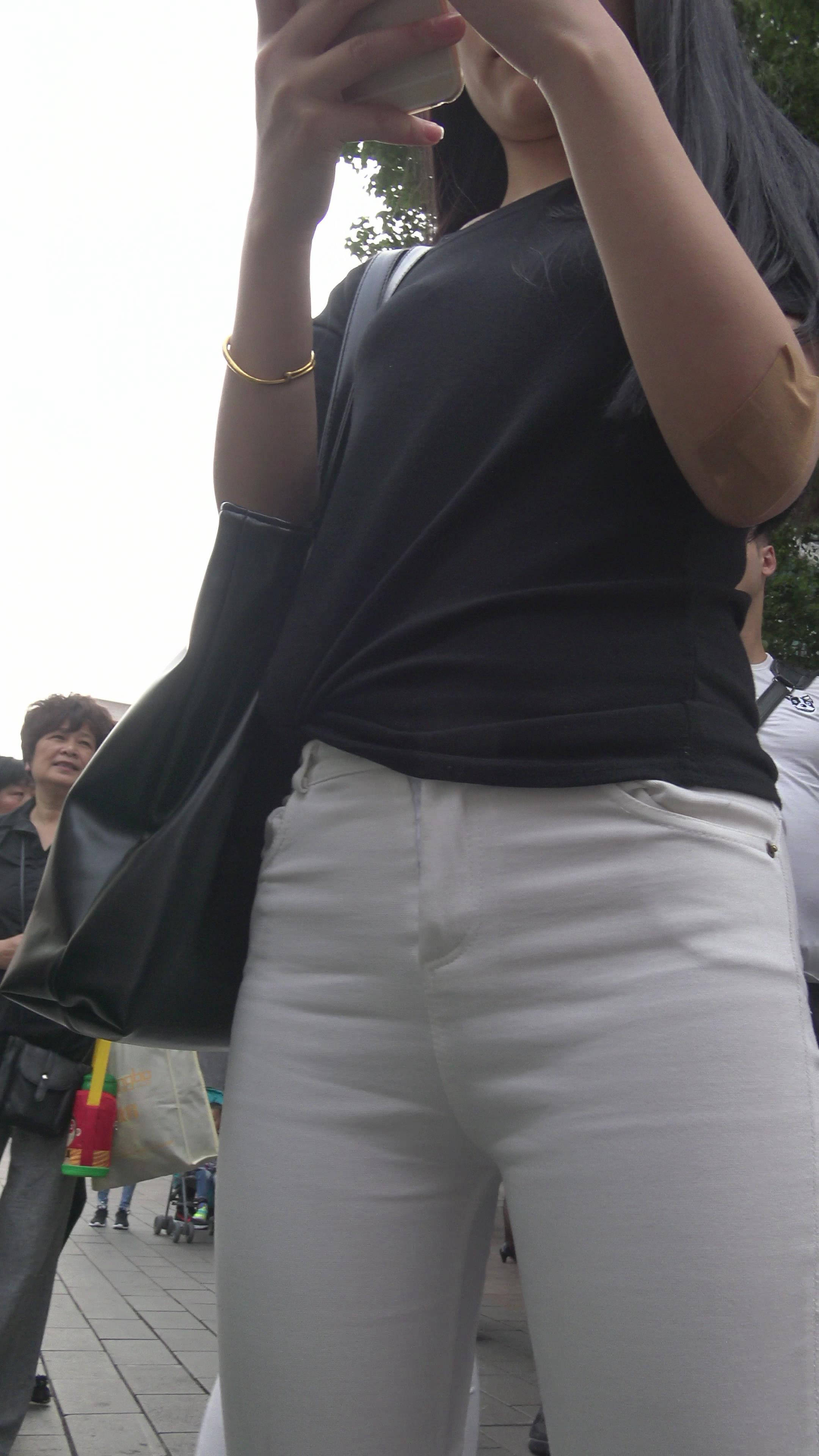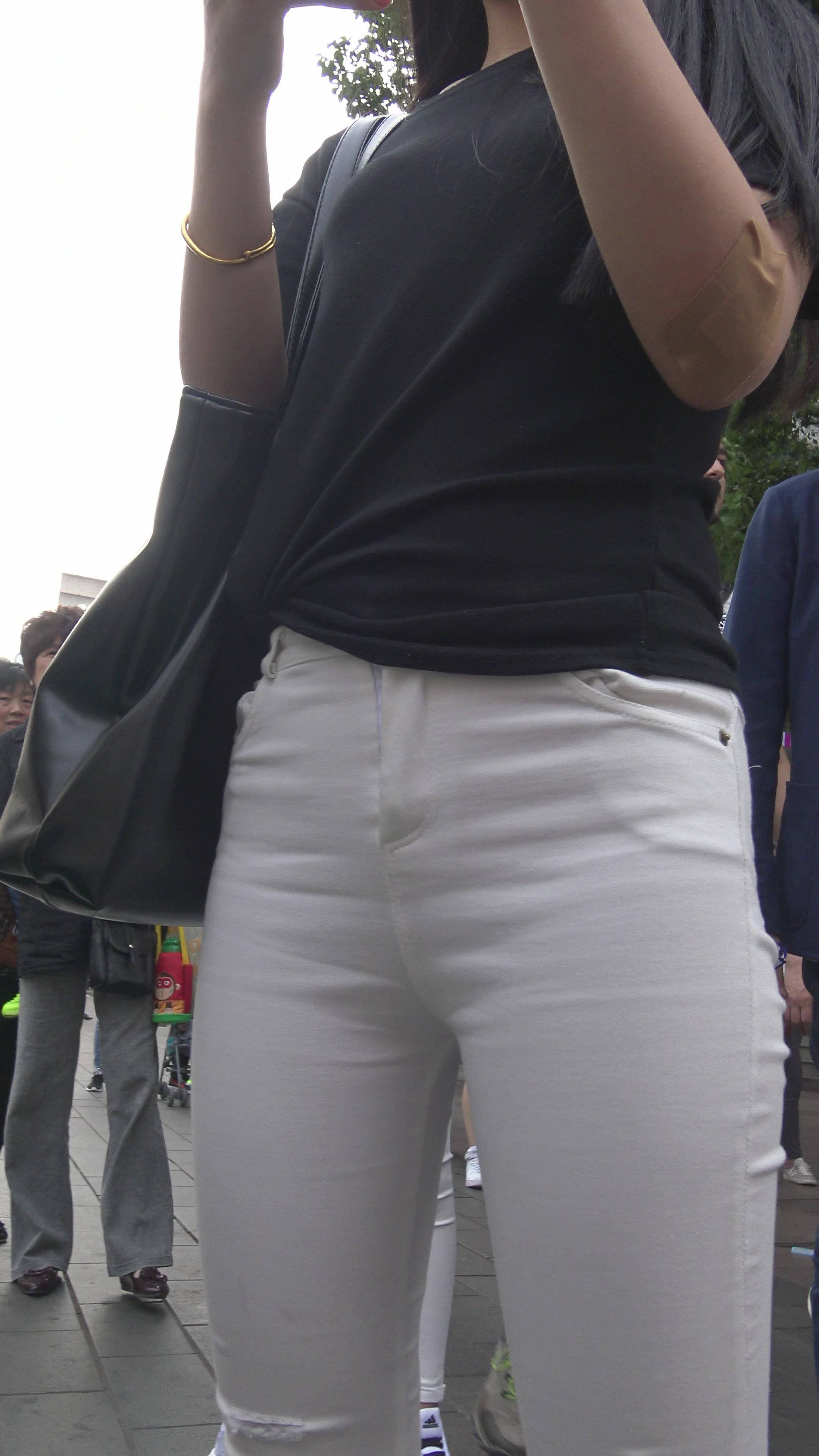4k-超紧身白裤美女,拉链都快要崩开了 编号7924
