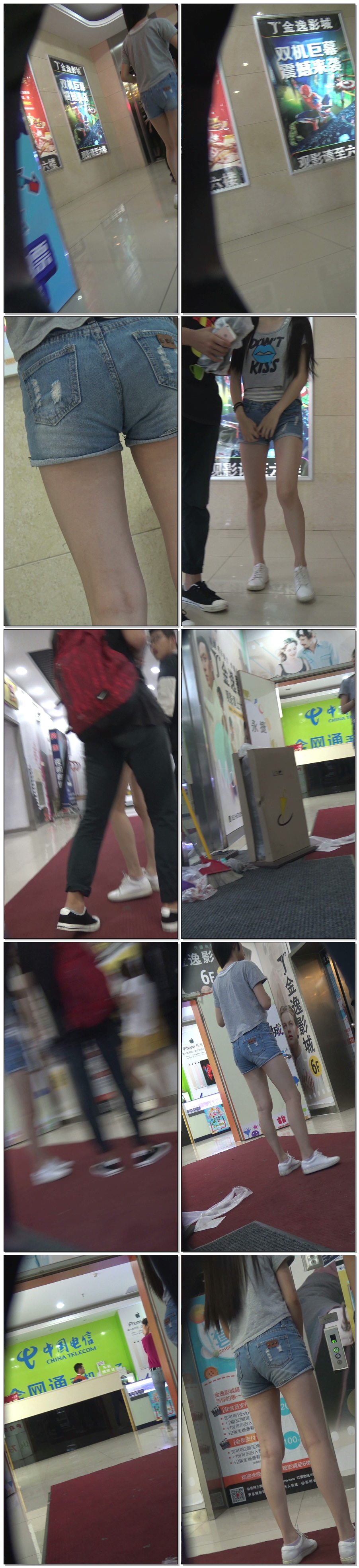 B1560商场紧身牛仔热裤长腿妹