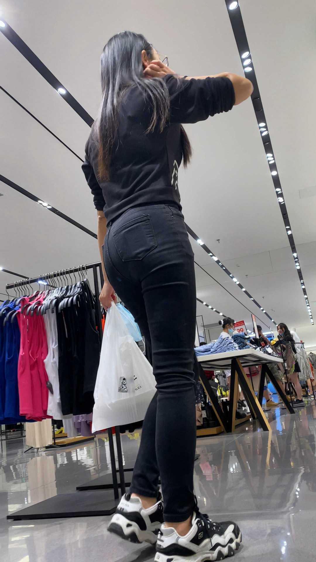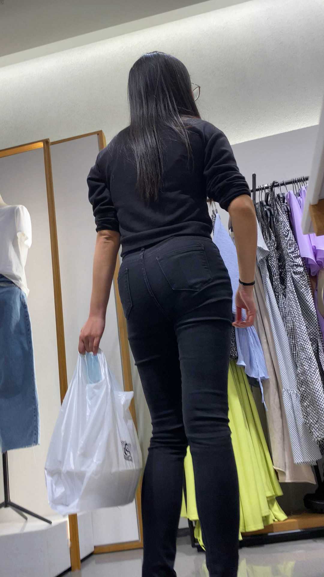 B1711服装店翘臀黑裤少妇