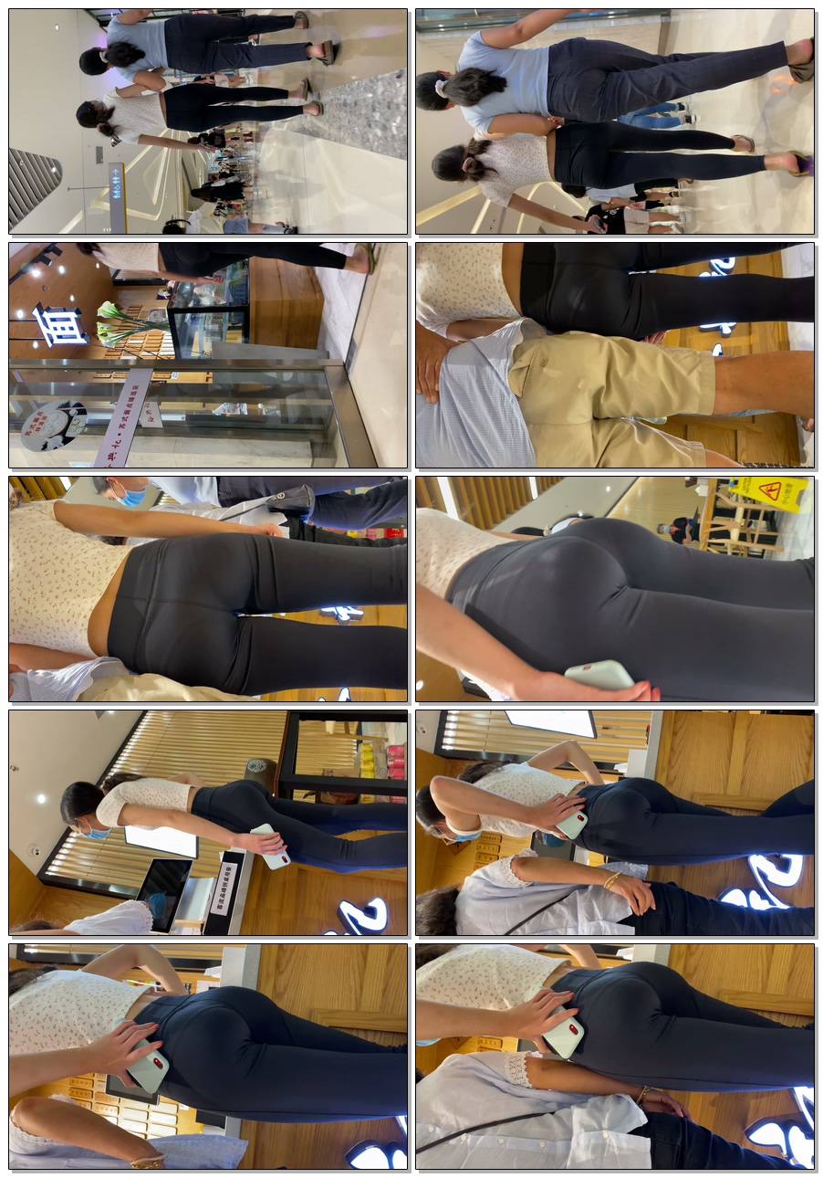 B916侧拍翘臀黑瑜伽裤紧内痕少女