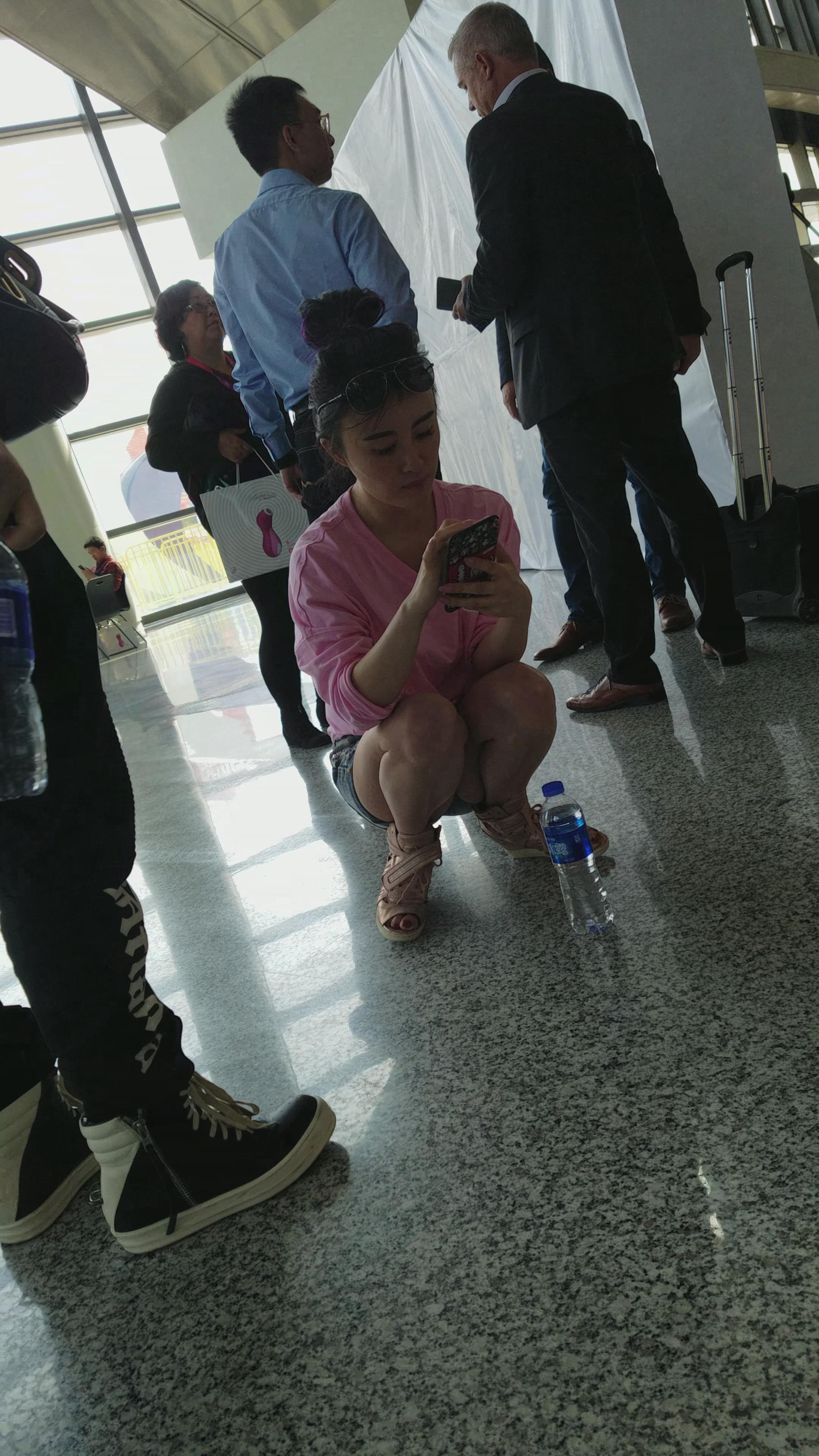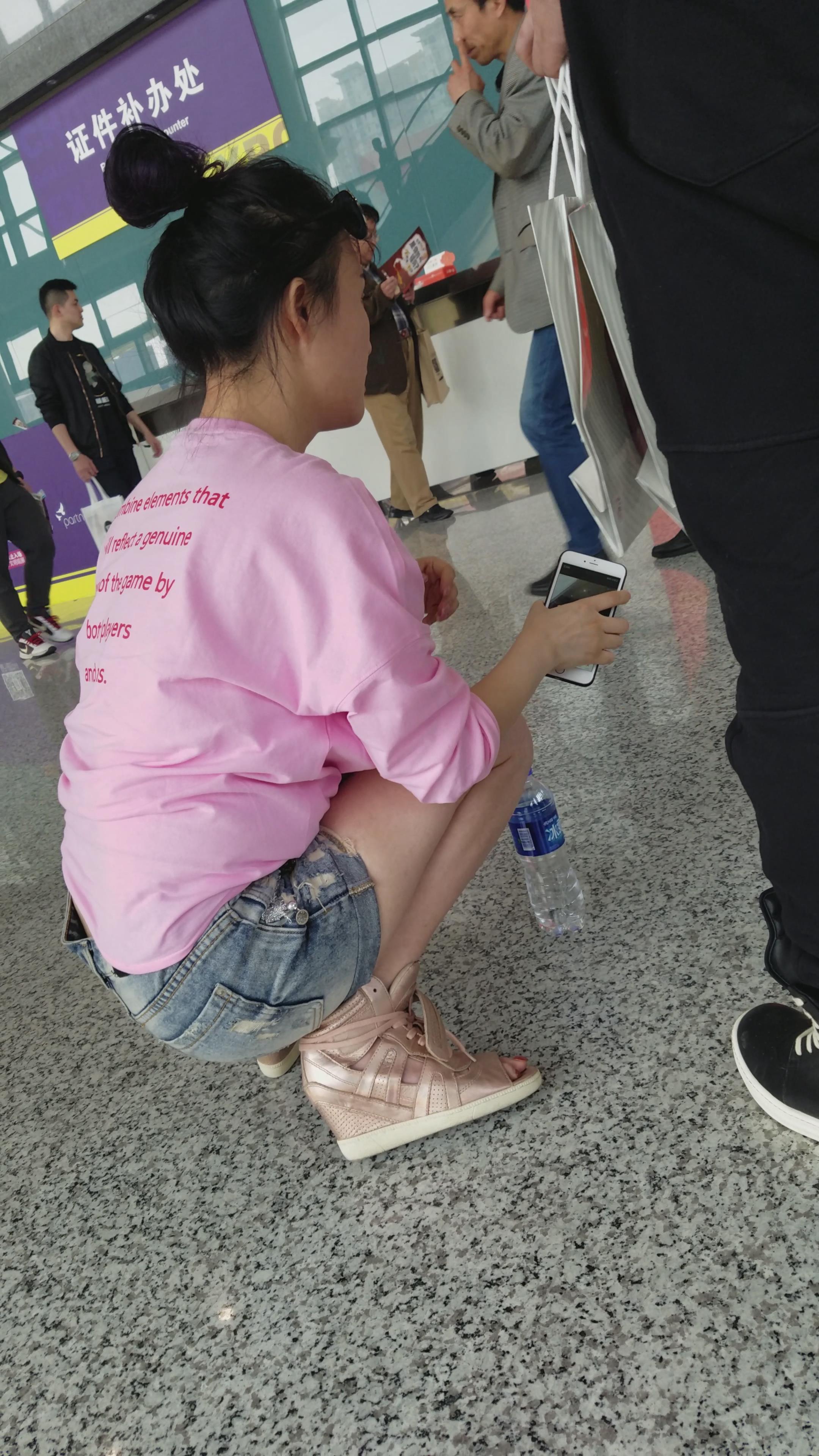 4k-粉色T恤衫牛仔热裤白皙美腿姐姐 编号3264