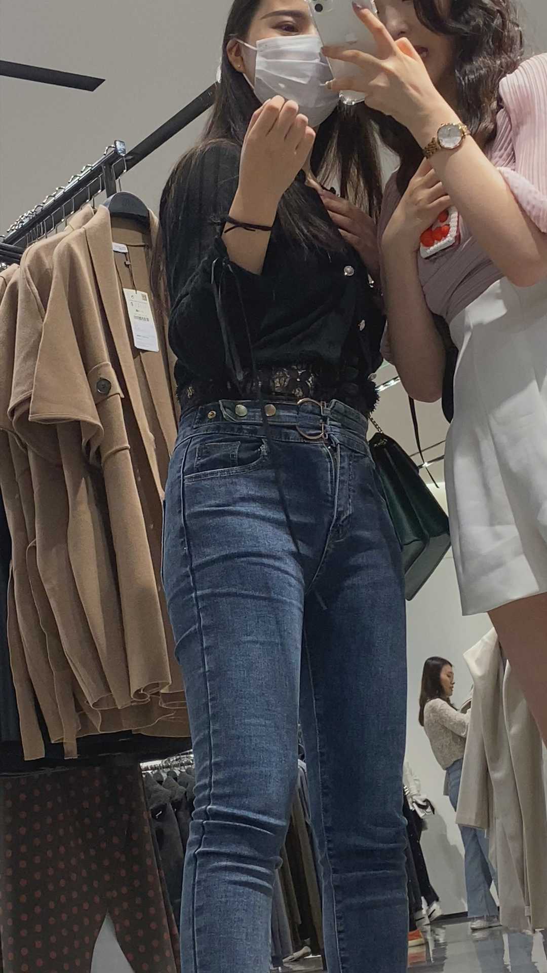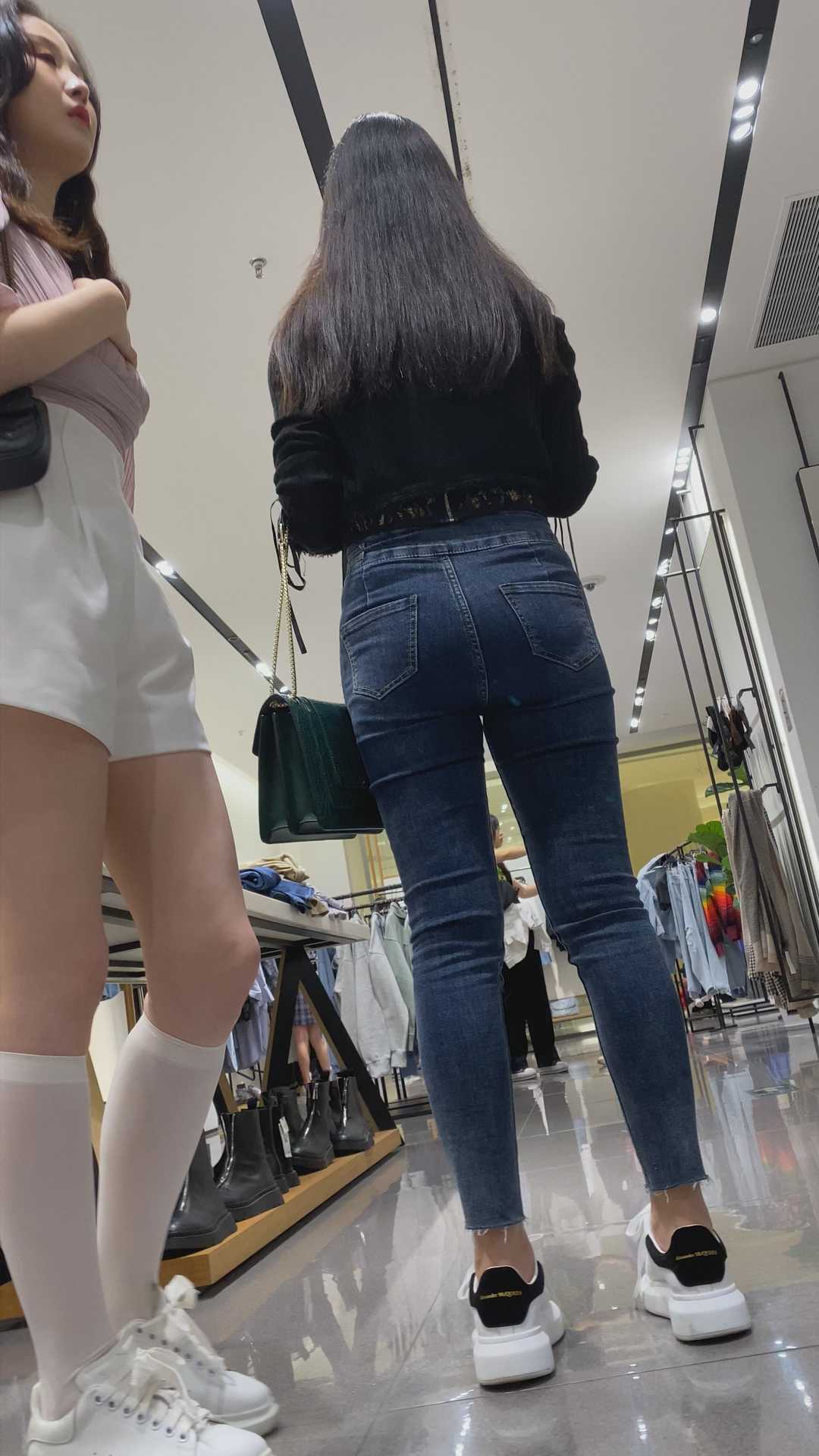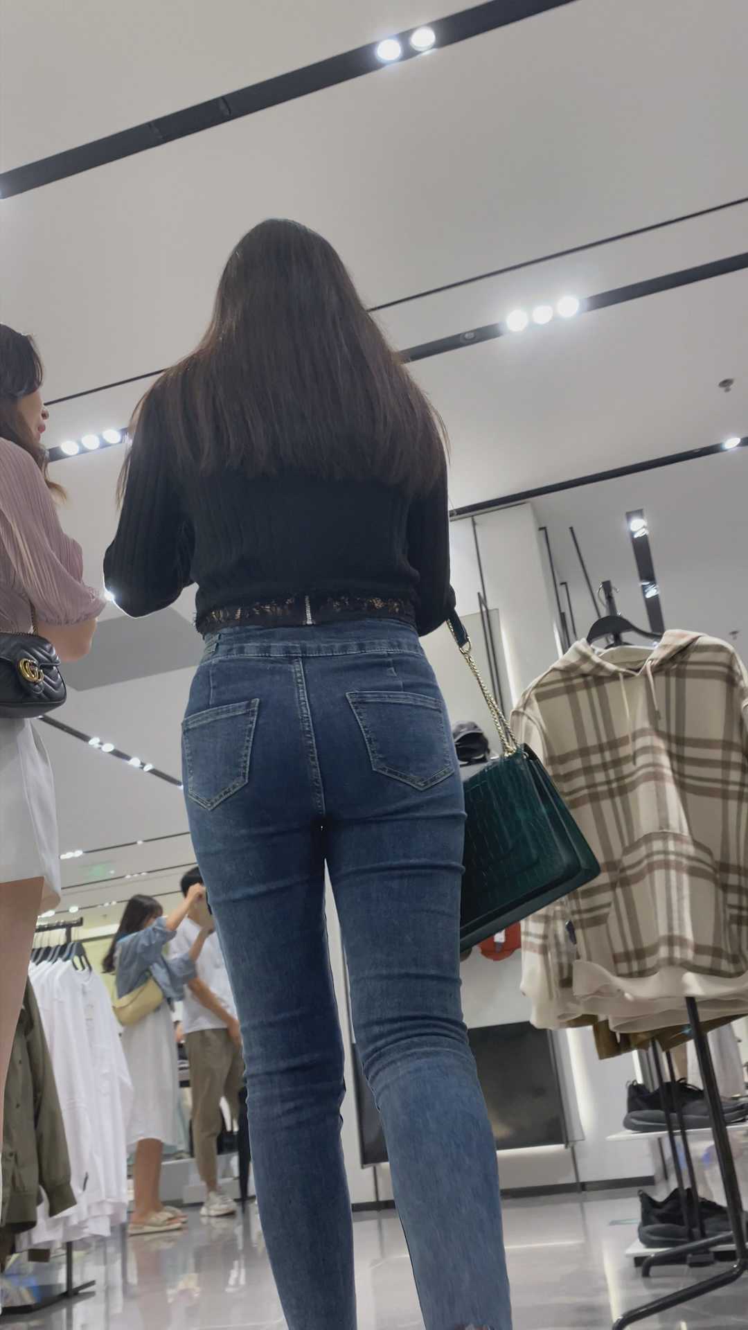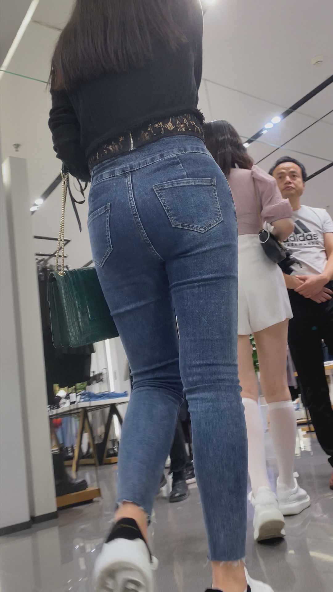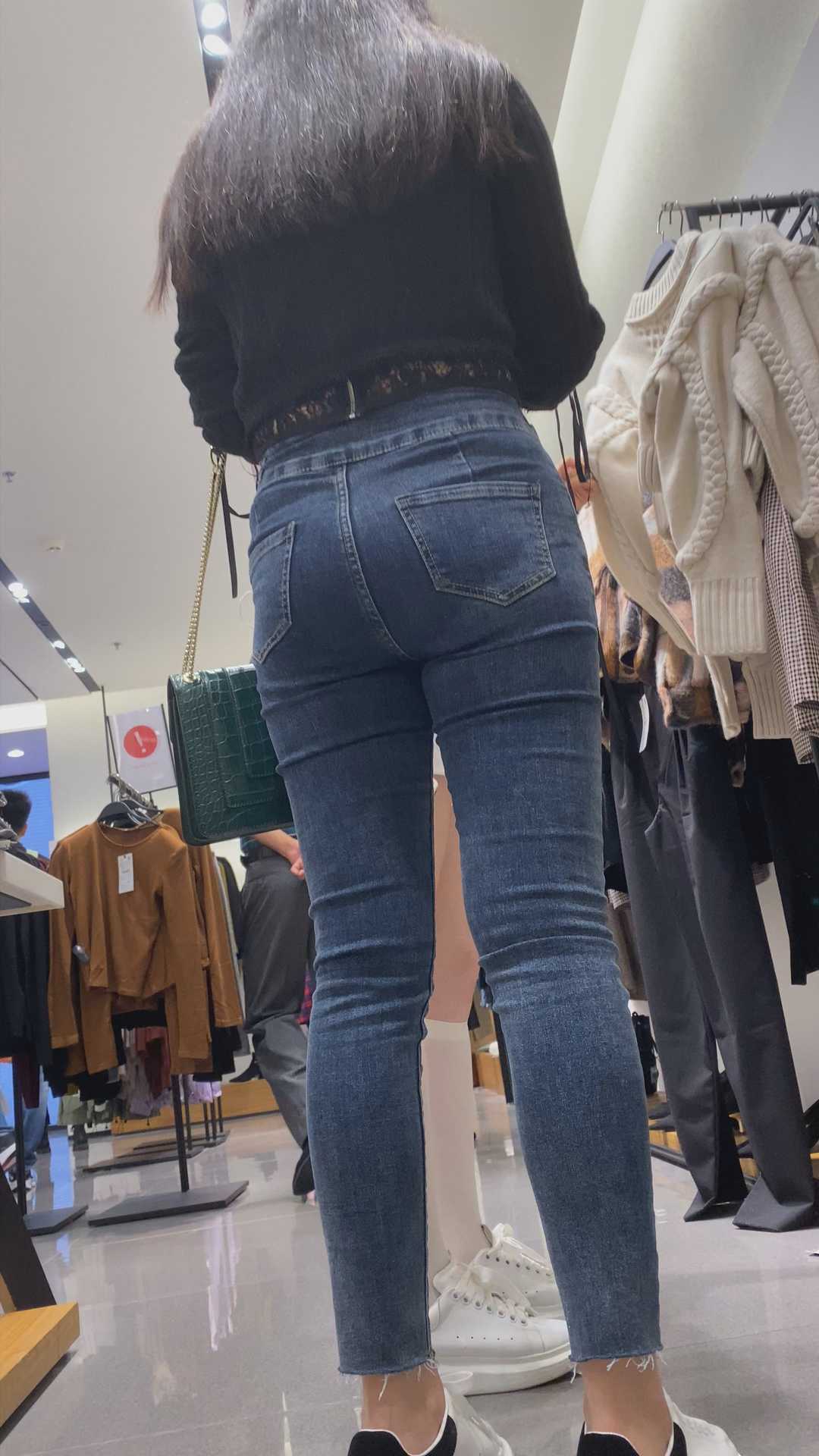 B958商场服装店紧身翘臀牛仔美女