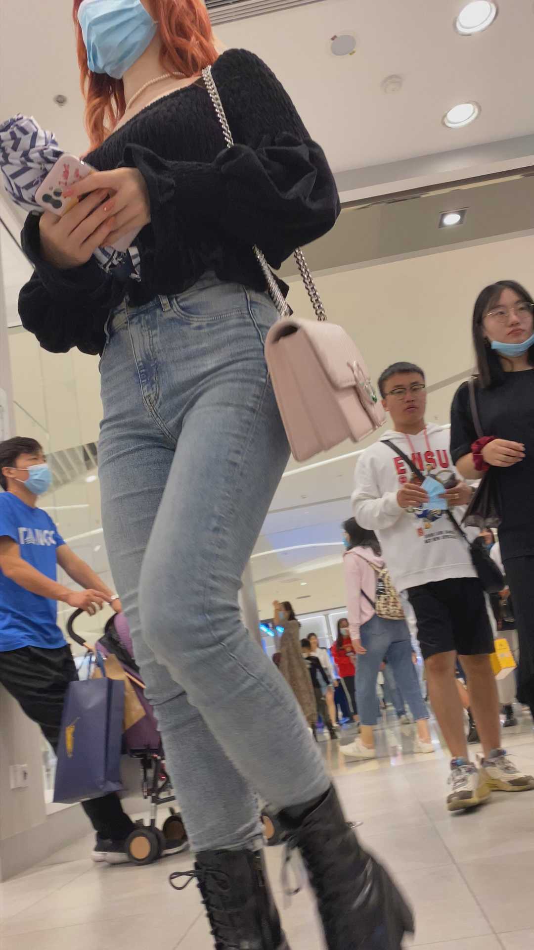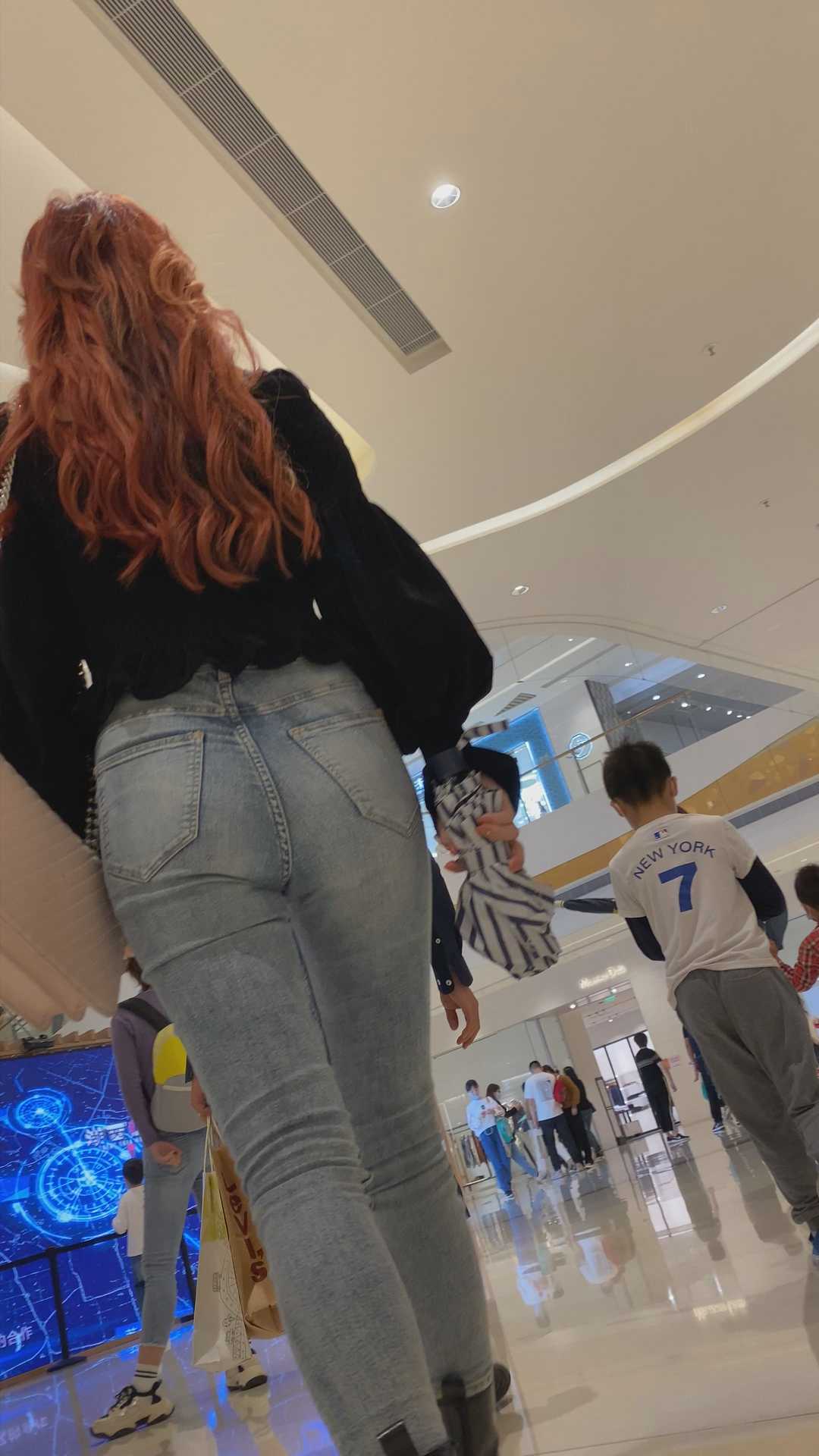 B960商场灰牛仔紧臀小姐姐