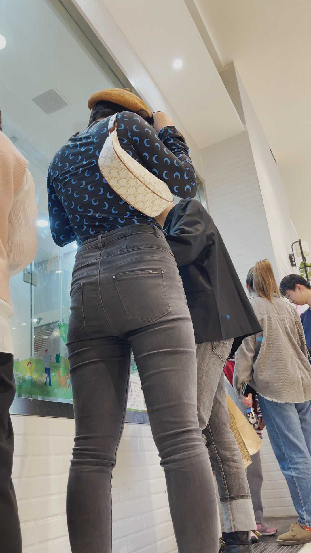 B980商场紧身灰牛仔金三角妹子