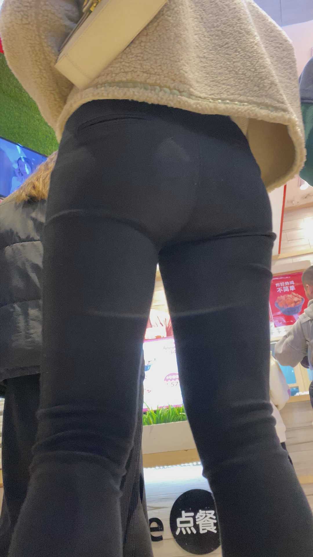 B1027商场黑裤大宽臀金三角美女