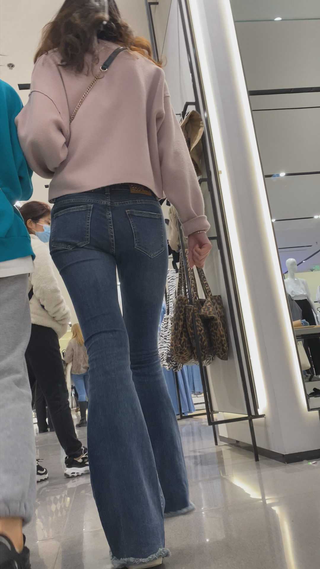 B1064性感喇叭裤细长腿少妇