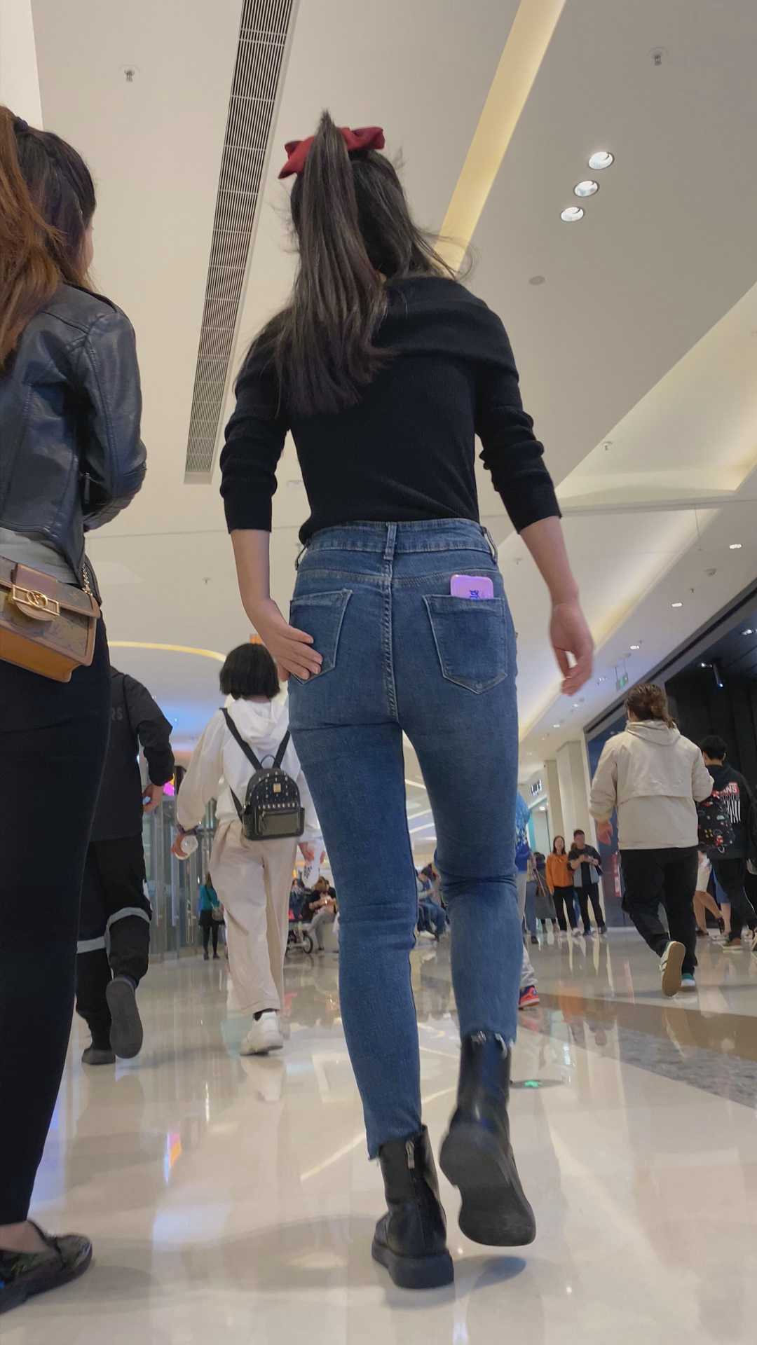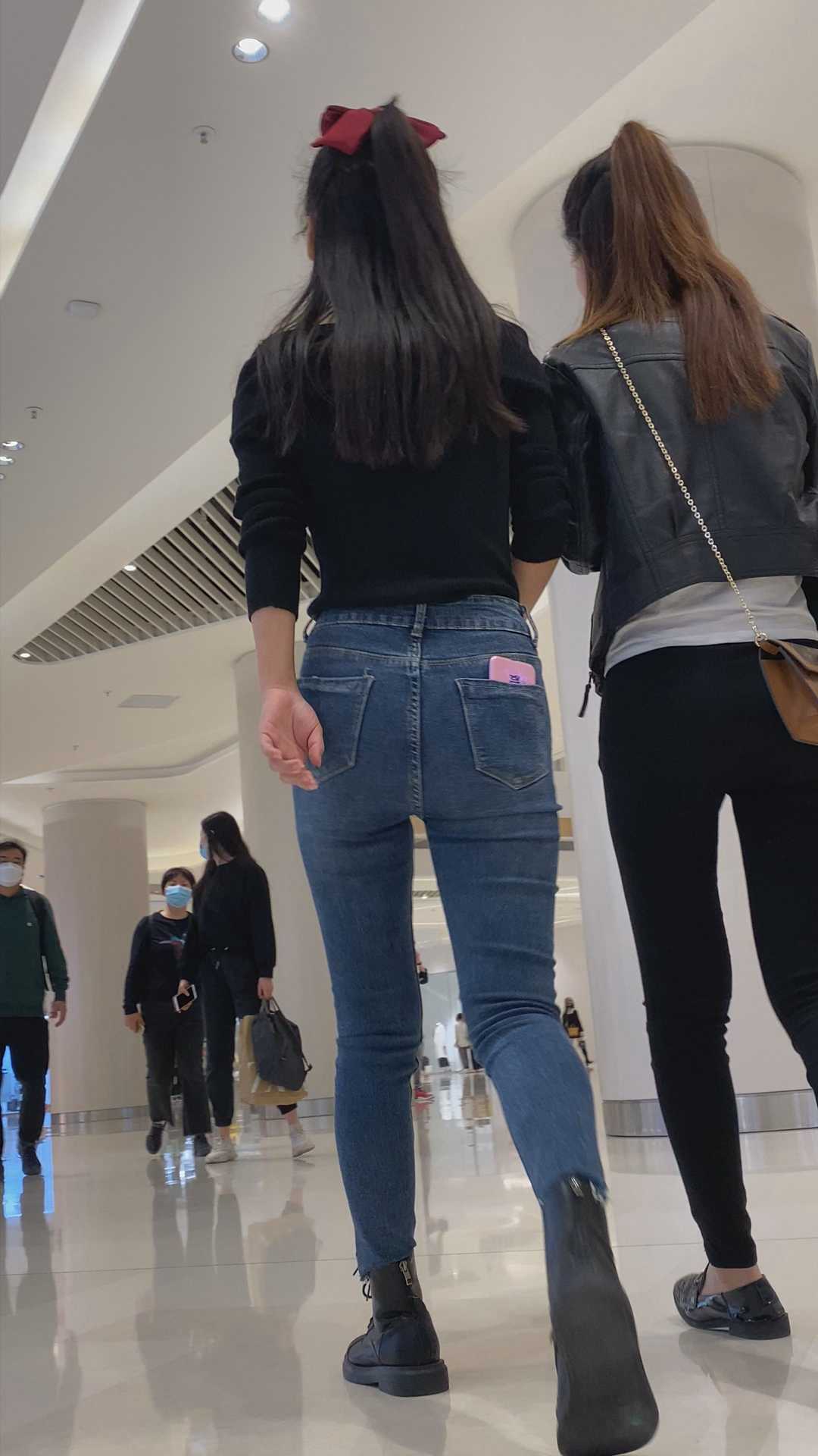 B1076性感深沟蓝牛与饱满丰臀黑裤两美女