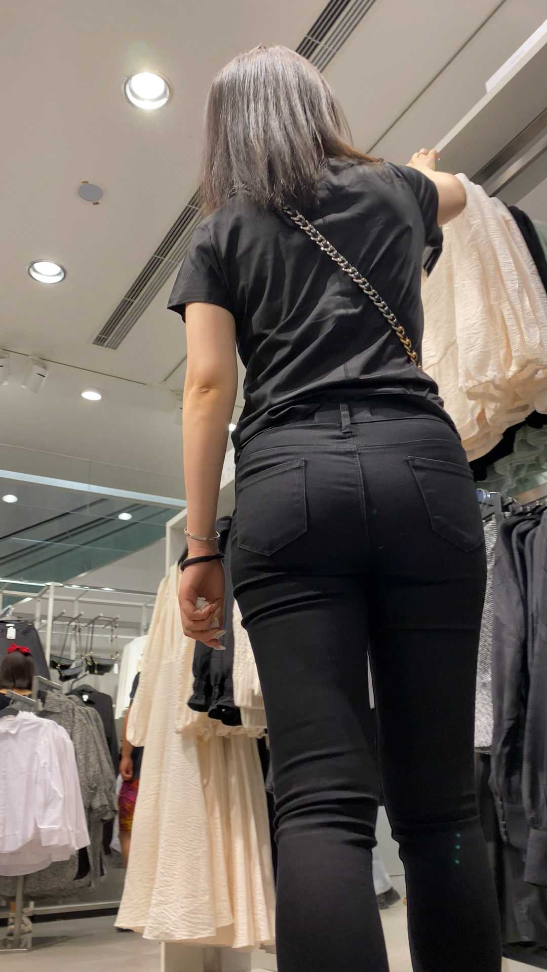 B1110性感饱满圆润黑裤少女