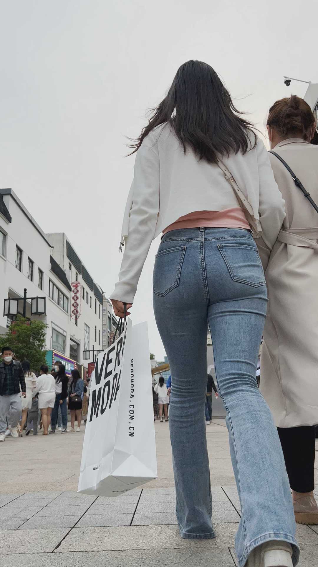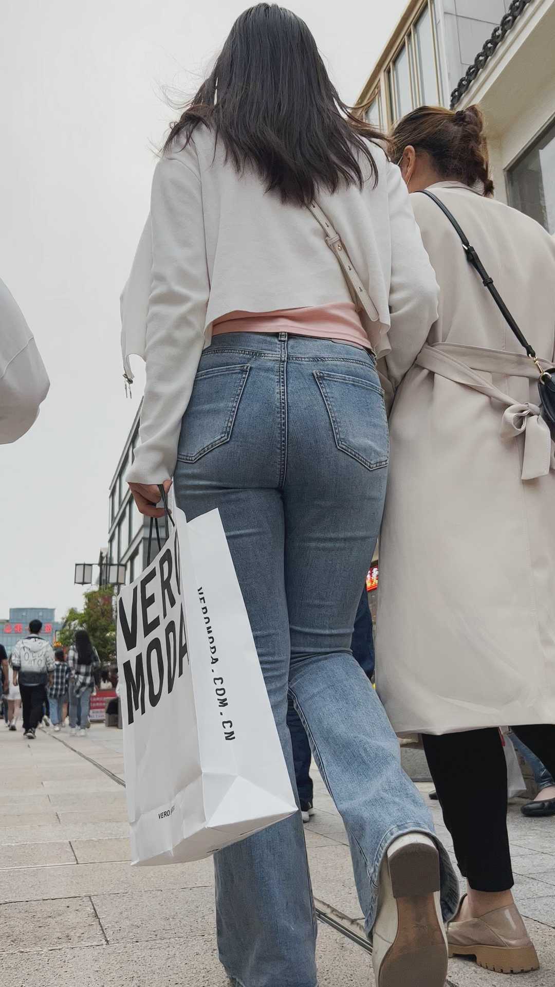 B1146性感紧身牛仔紧臀长发小姐姐