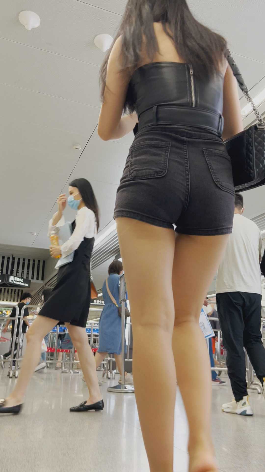 B1157牛仔短裤勒沟美女小姐姐