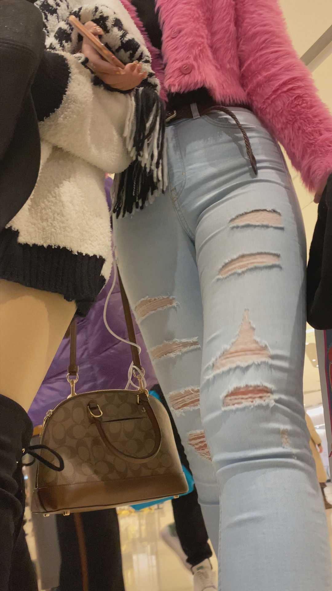 B1161白牛仔饱满骆驼趾紧臀大美女