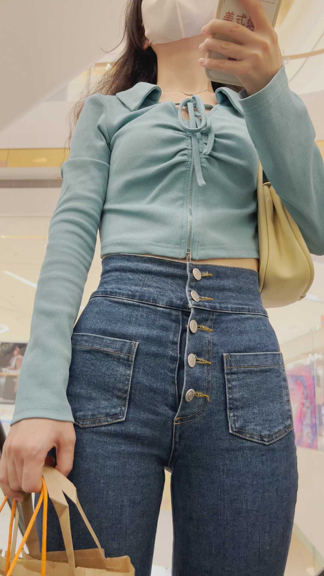 B1172蛇腰美女陪短裙闺蜜买奶茶