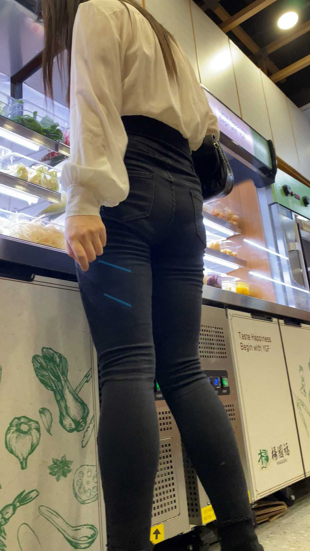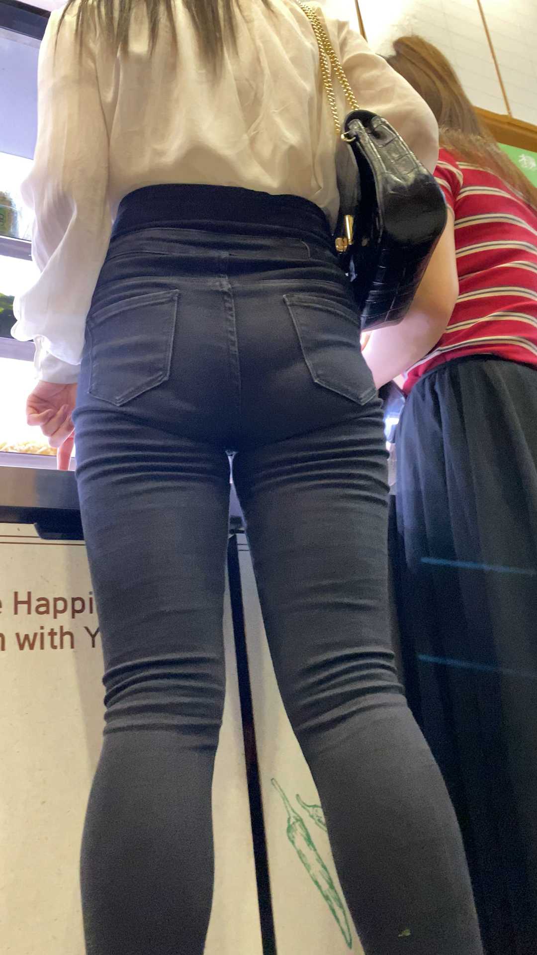 B1174超紧身黑牛仔透内痕长发美女