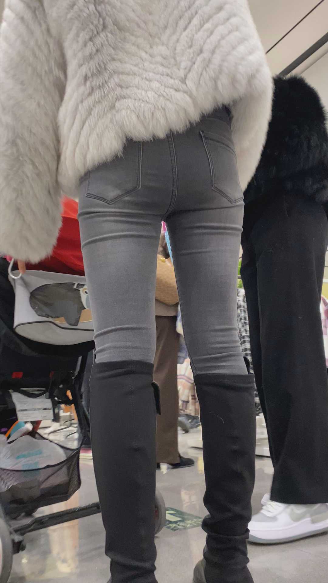 B1194服装店紧身包臀灰牛妹子