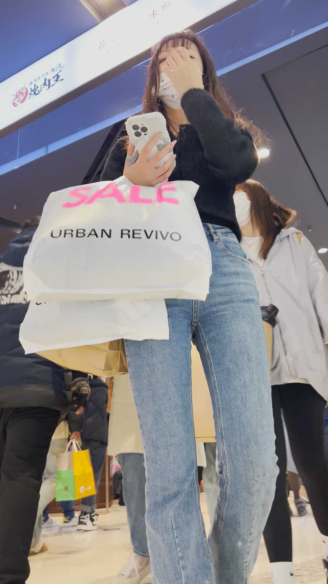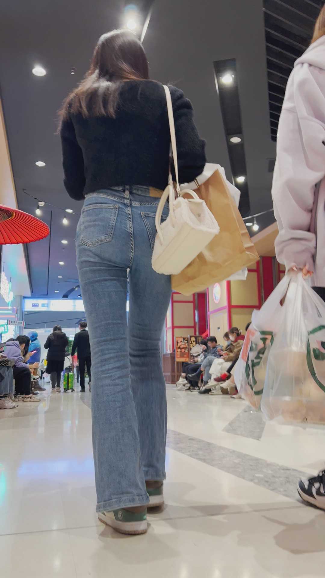 B1198服装店紧身牛仔妹子