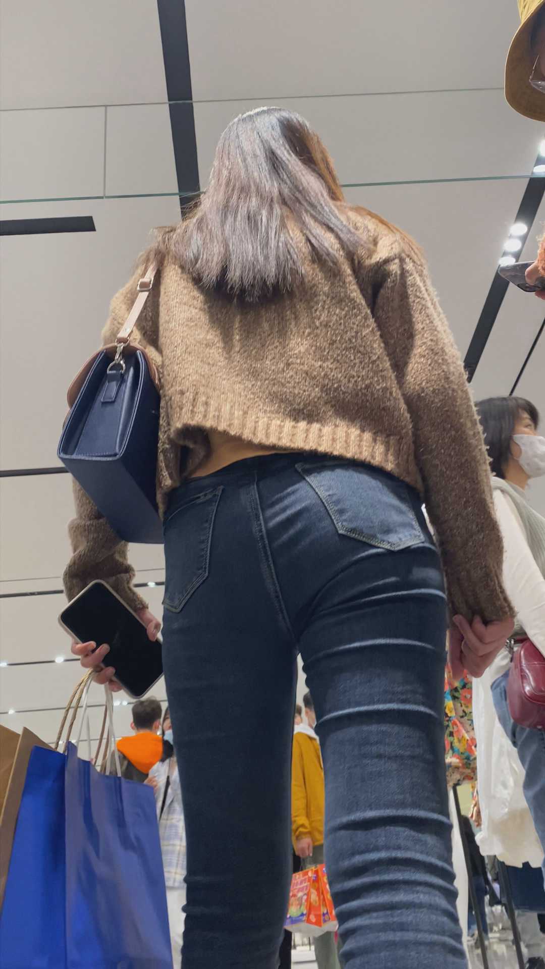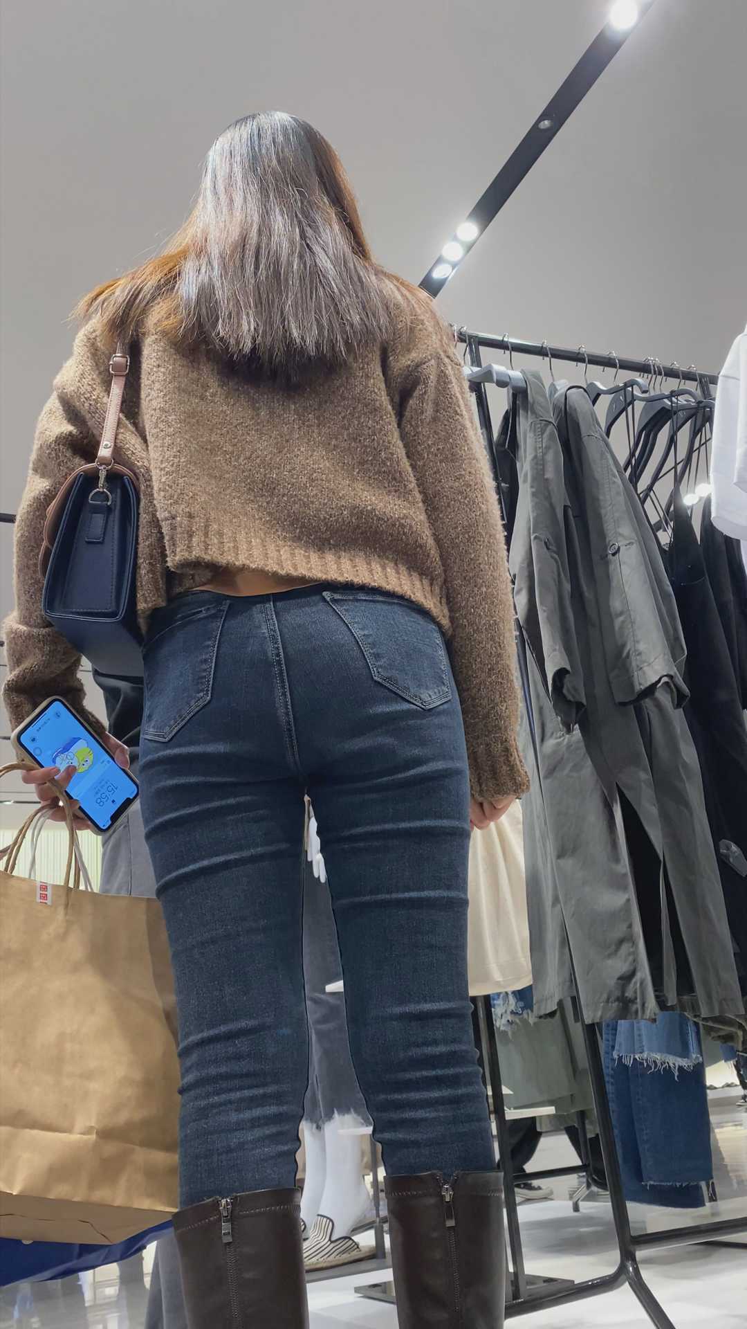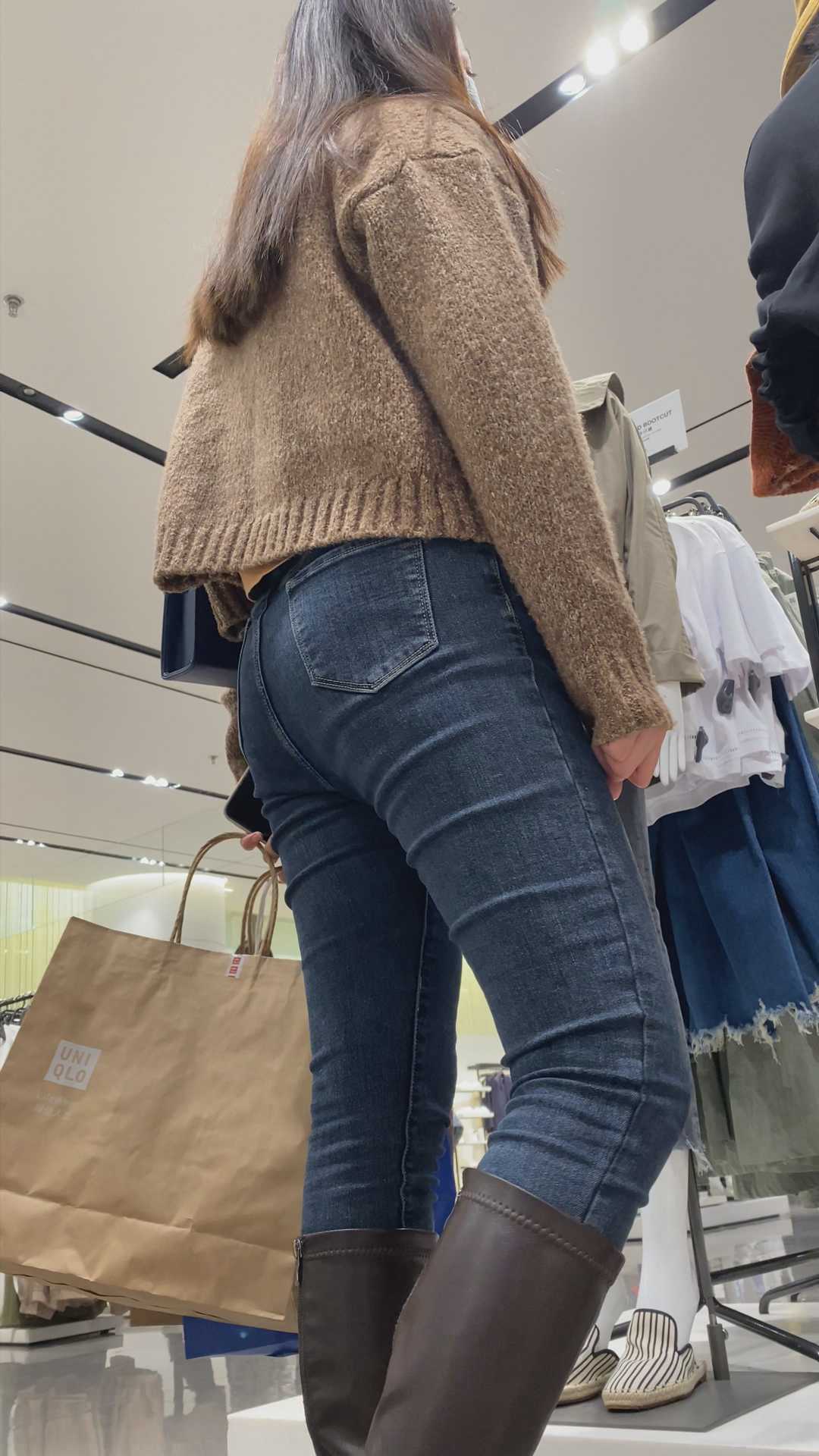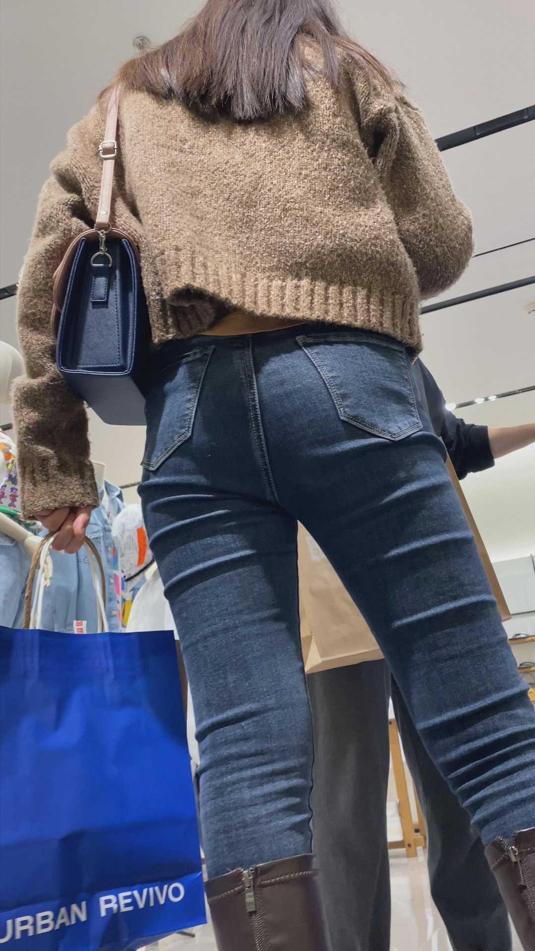 B1201服装店紧身牛仔翘臀美女